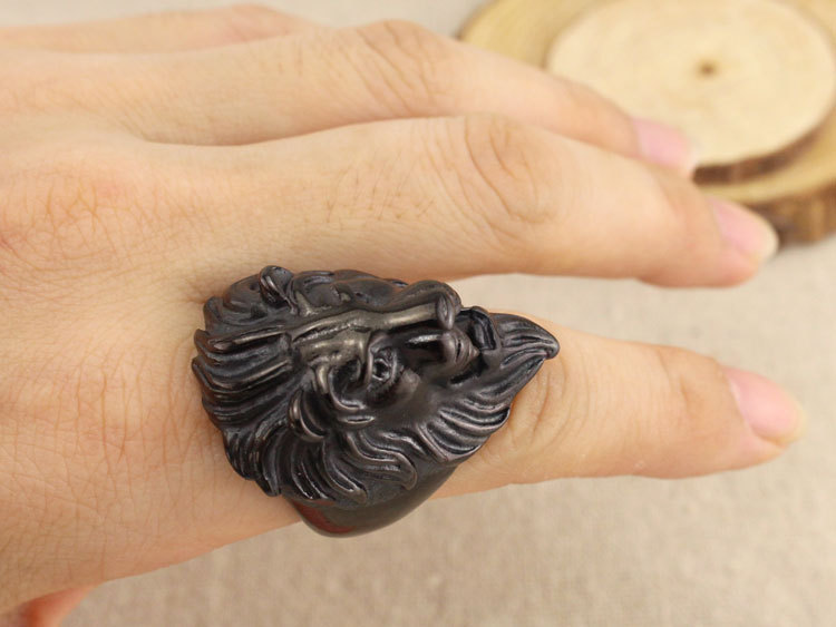Description: [Black Lion Head] Punk rock band titanium steel ring ring, titanium steel casting neutral handsome super cool non-mainstream ring.