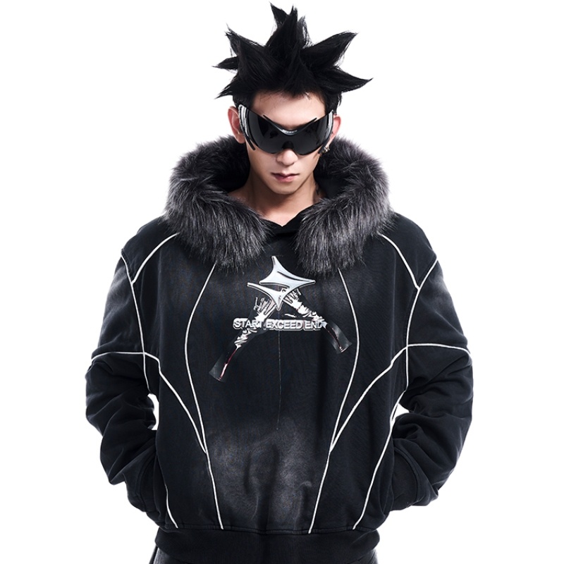 Autumn And Winter Washed Distressed Fur Collar Hood Sweater