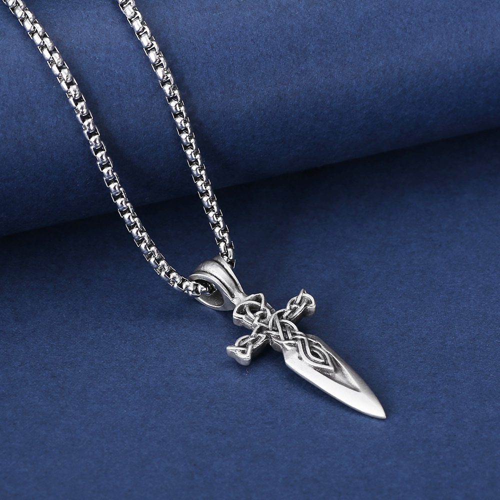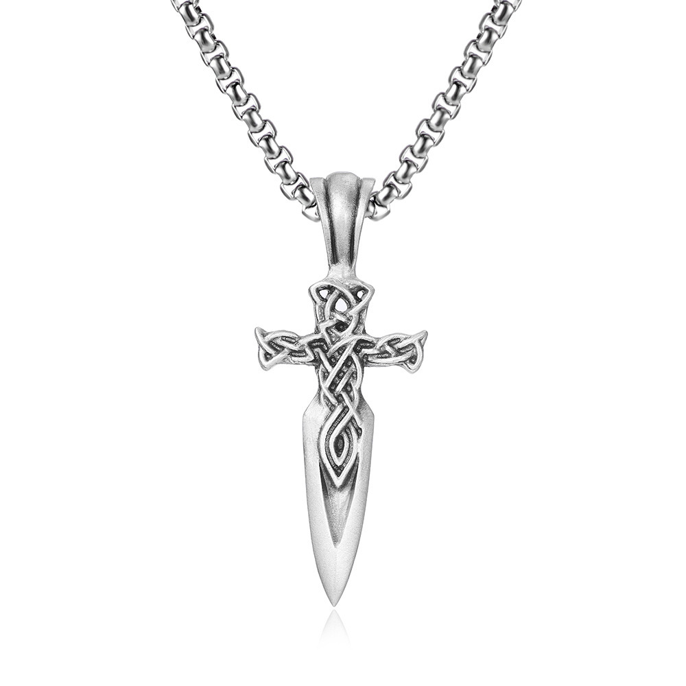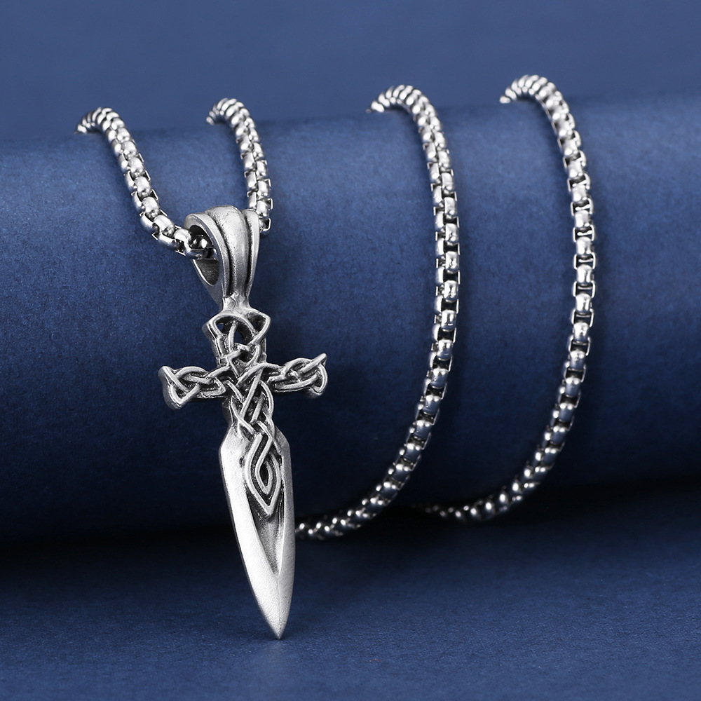 Carved Viking Celtic Knot Sword Pendant Men’s Titanium Steel Necklace