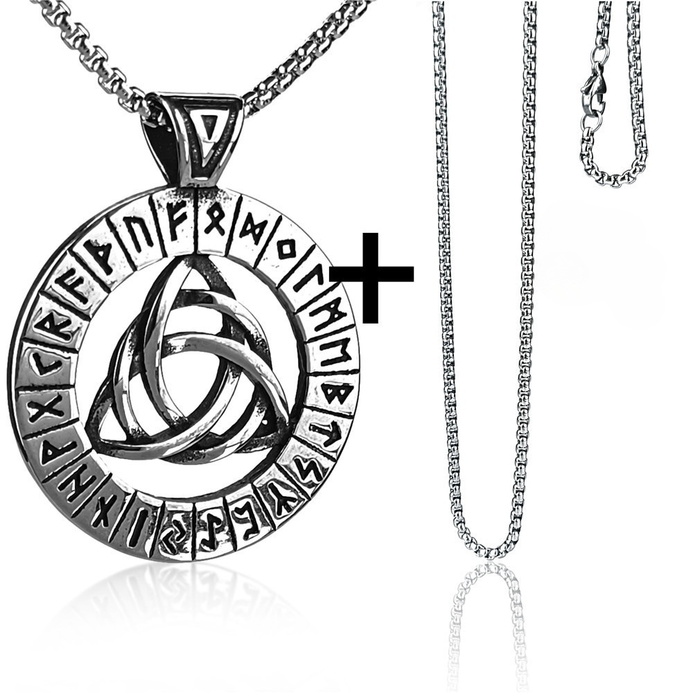Circle Luen Rune Triangle Electroplating Titanium Steel Pendant Necklace