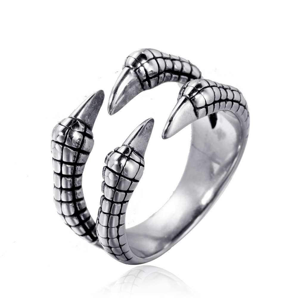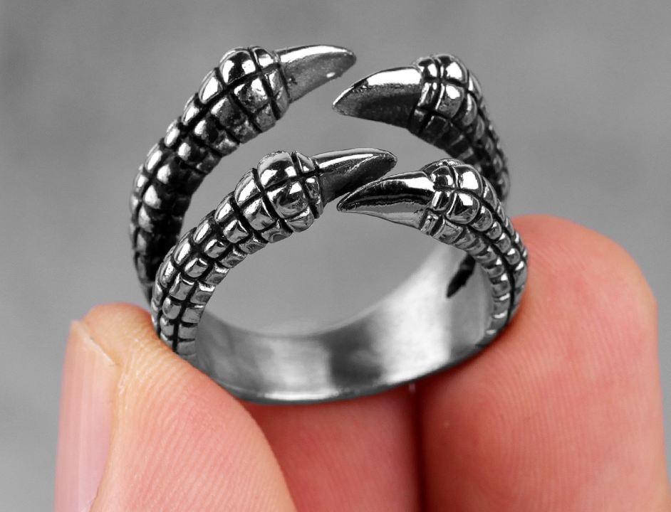 This stunning 316L stainless steel claws wrapped ring is the perfect addition to any wardrobe. Crafted from a solid piece of high-quality stainless steel, this eye catching ring features claw-like accents that encircle the entire band, giving it a unique and modern look. A symbol of strength, this ring is sure to turn heads and become an unforgettable part of your wardrobe.