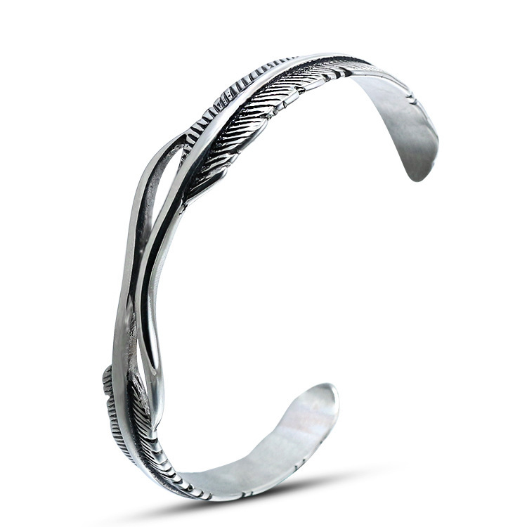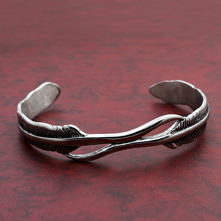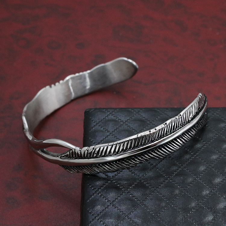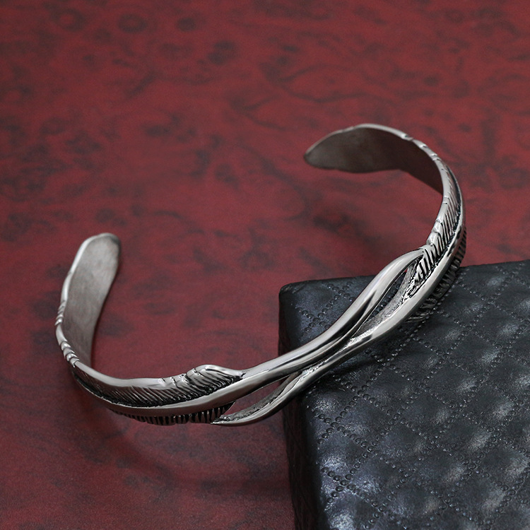 Cross-Border European And American Hot Style Titanium Steel Bracelet Retro Open Feather Simple Style Men And Women Stainless Steel Bracelet Jewelry