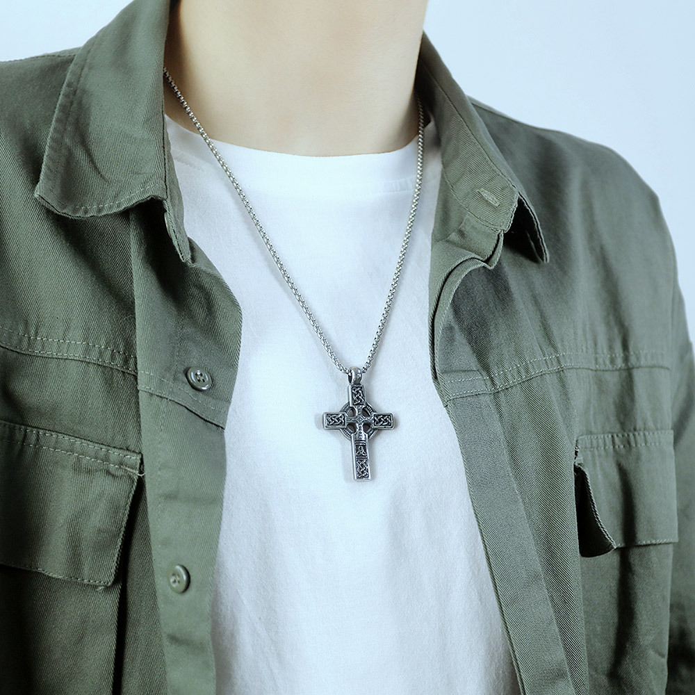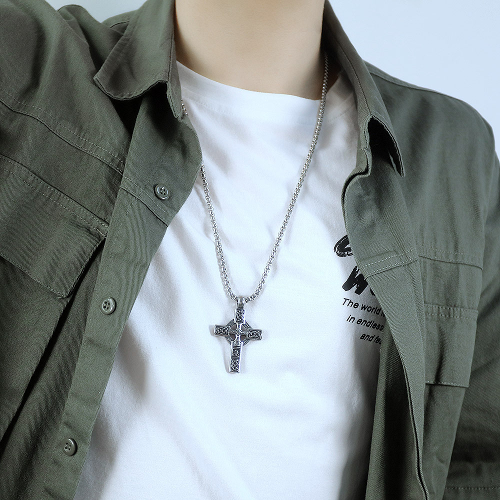 Cross Pendant Trendy Men’s Retro All-match Stainless Steel Necklace