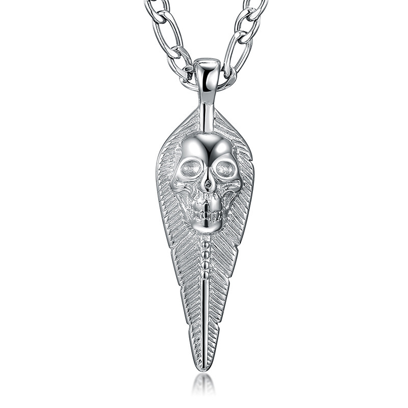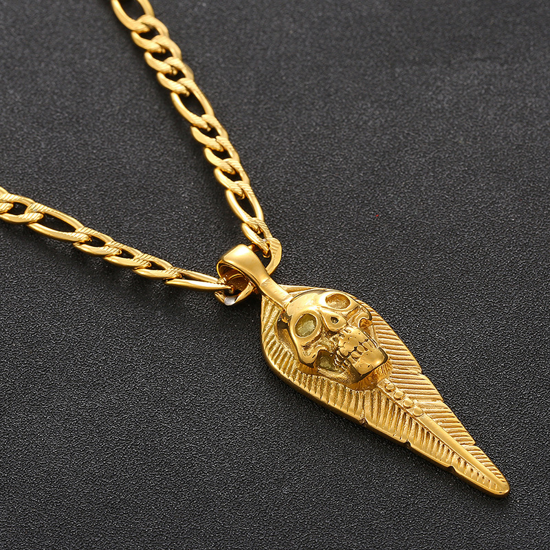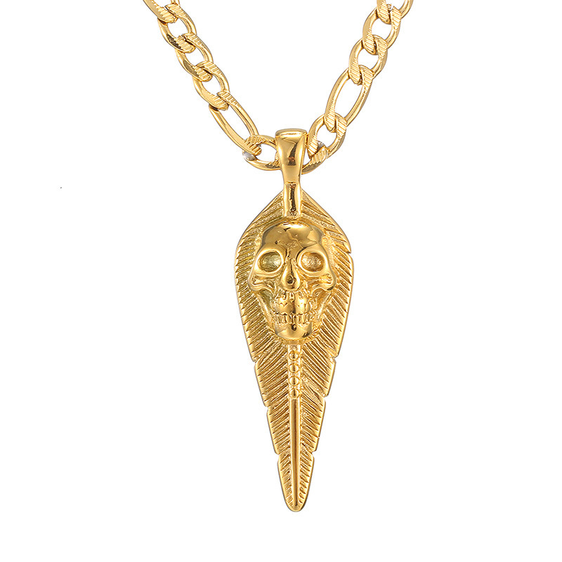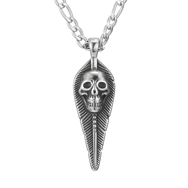 European And American Fashion Retro Stainless Steel Leaf Skull Necklace