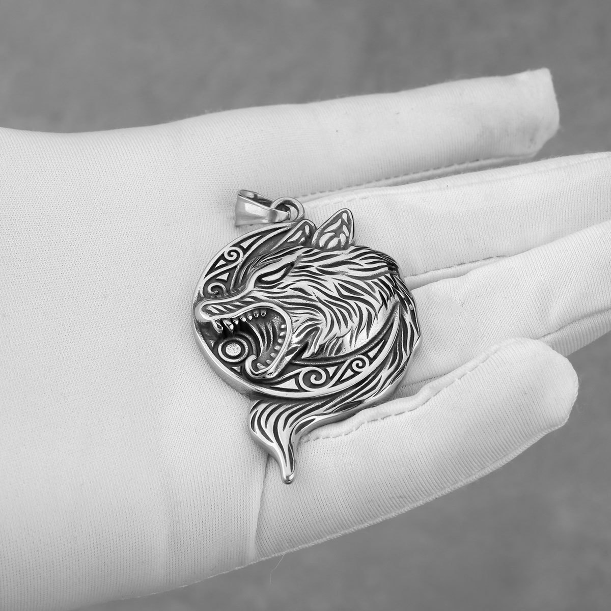 Fashion Viking Wolf Head Stainless Steel Men’s Pendant Necklace