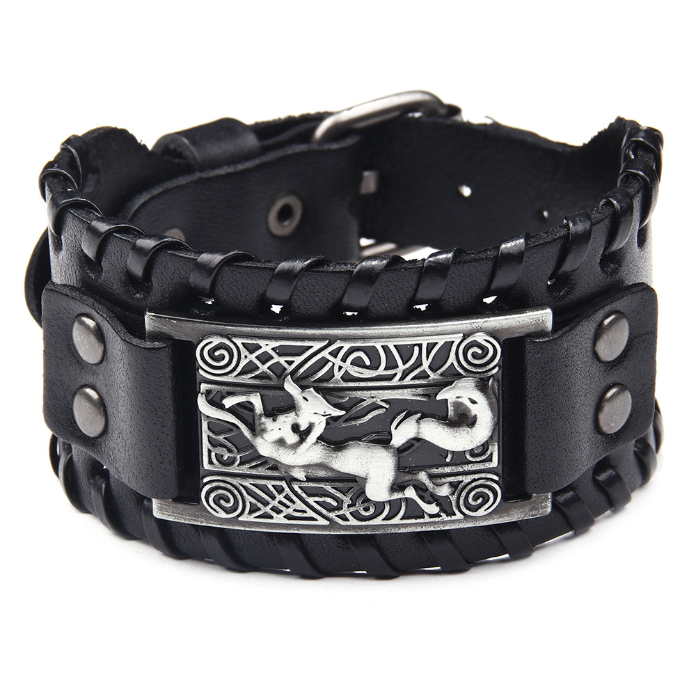 Genuine Leather Alloy Fox Wide Leather Bracelet Amazon Hot Style Men’s Retro Braided Bracelet