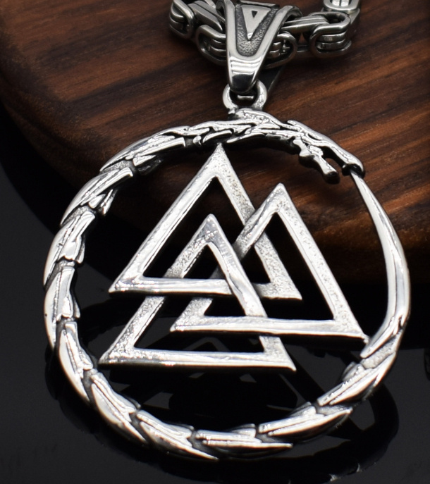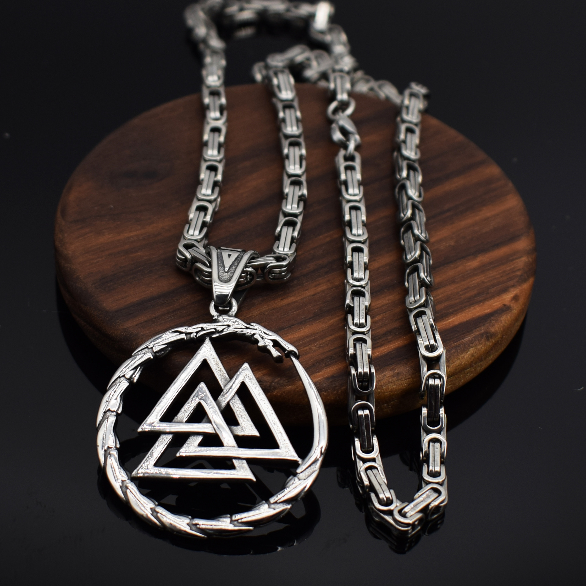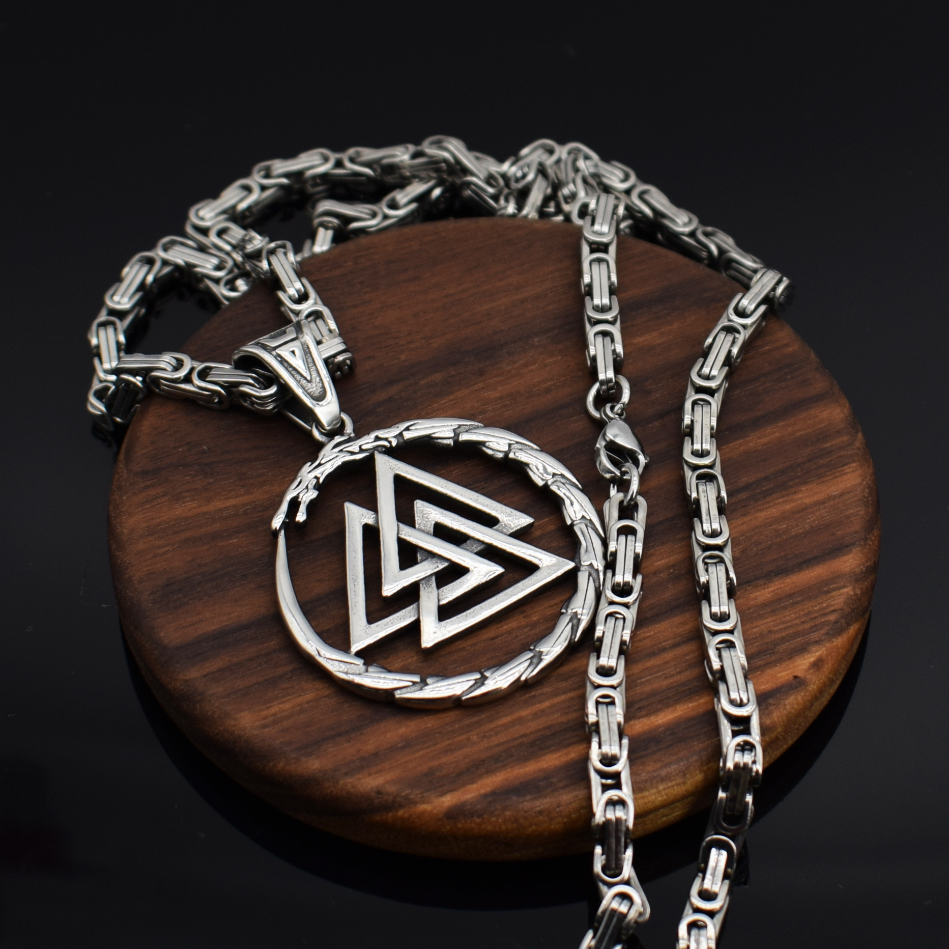 Men Stainless Steel Viking Valknut Amulet Dragon Pendant Necklace