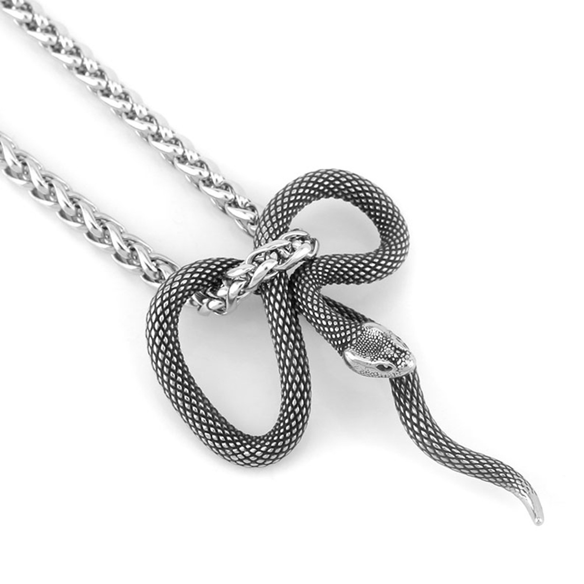 Men’s And Women’s Fashion Retro Punk Animal Snake Titanium Steel Pendant Necklace
