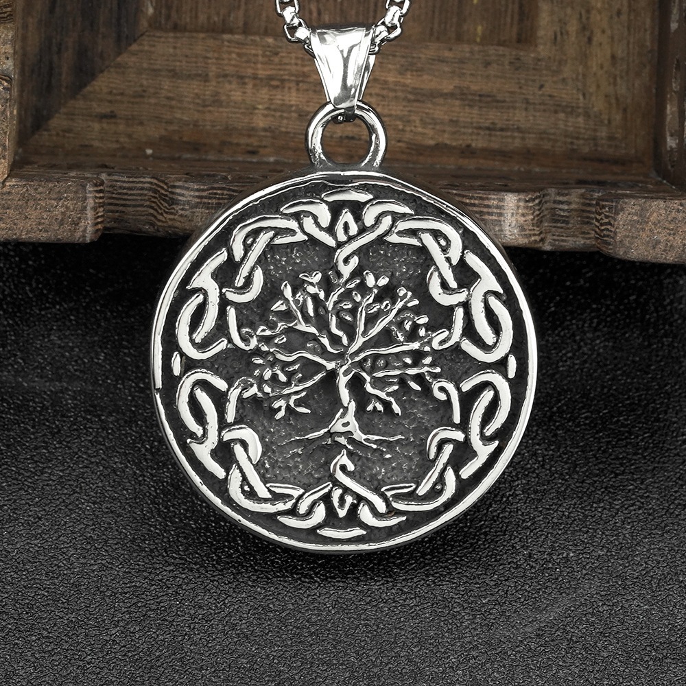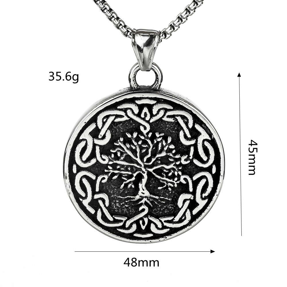 Mens Fashion Vintage Viking Tree Of Life Titanium Steel Pendant Necklace
