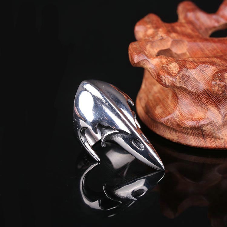 This classically designed Raven Skull Ring is one of a kind. Crafted to perfection from solid 316L Stainless Steel, this is an impressive piece of wearable art. This statement piece is sure to garner complements and add an edgy and bold vibe to any outfit.