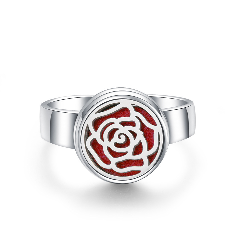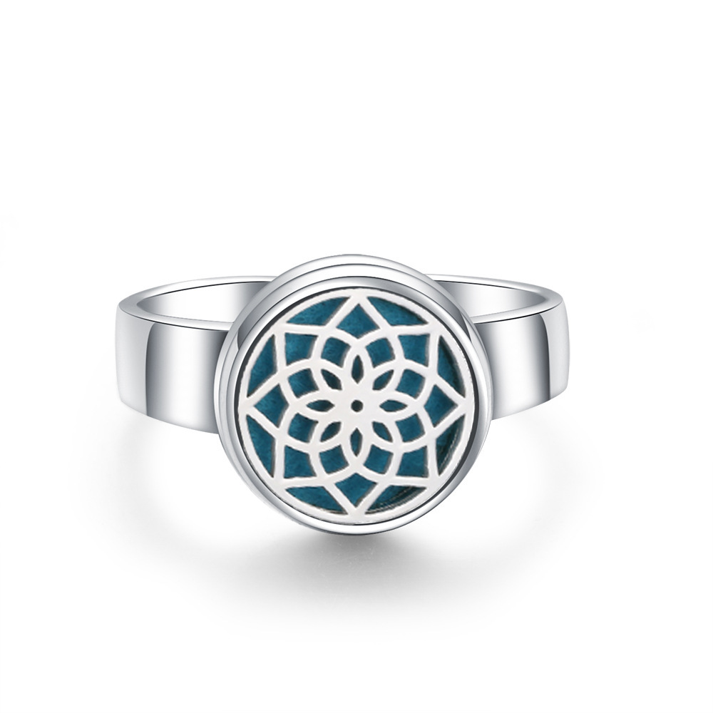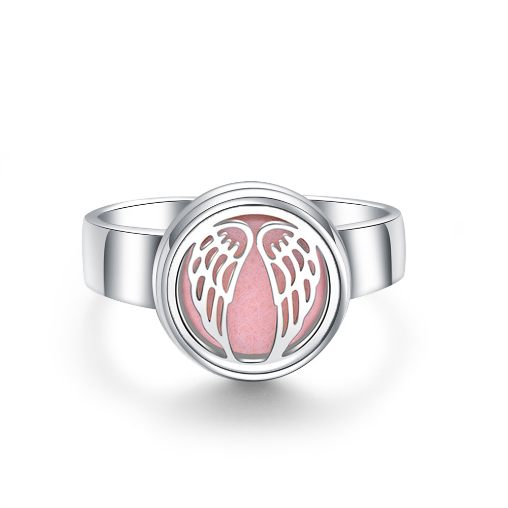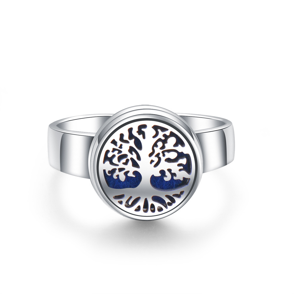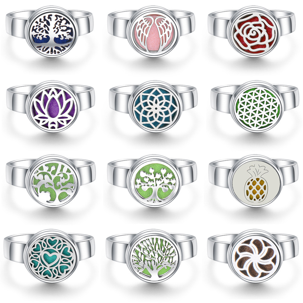New Stainless Steel Aromatherapy Ring Fashion Tree Of Life Spiral Open Perfume Diffuser Locket Ring Heart-Shaped Angel Wing