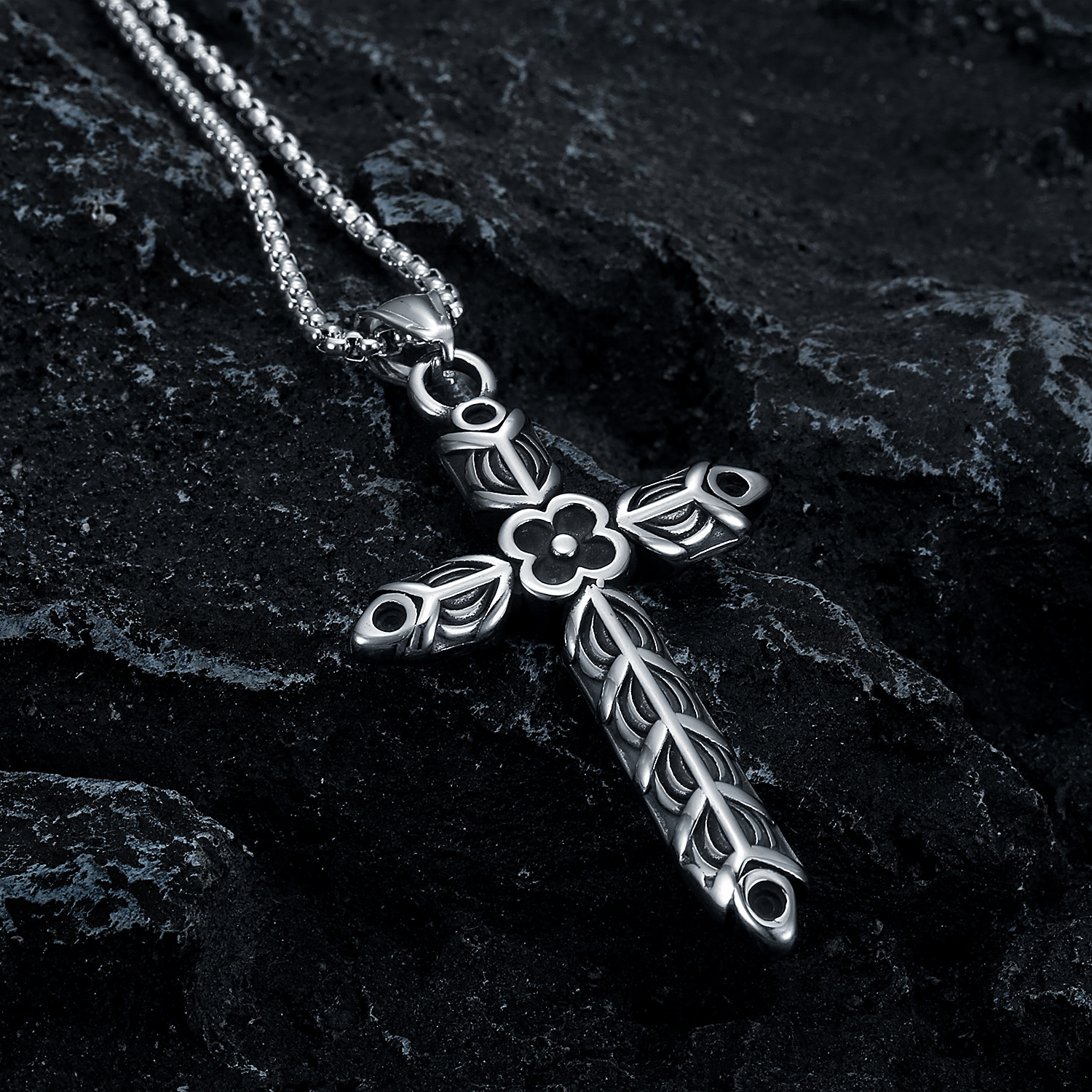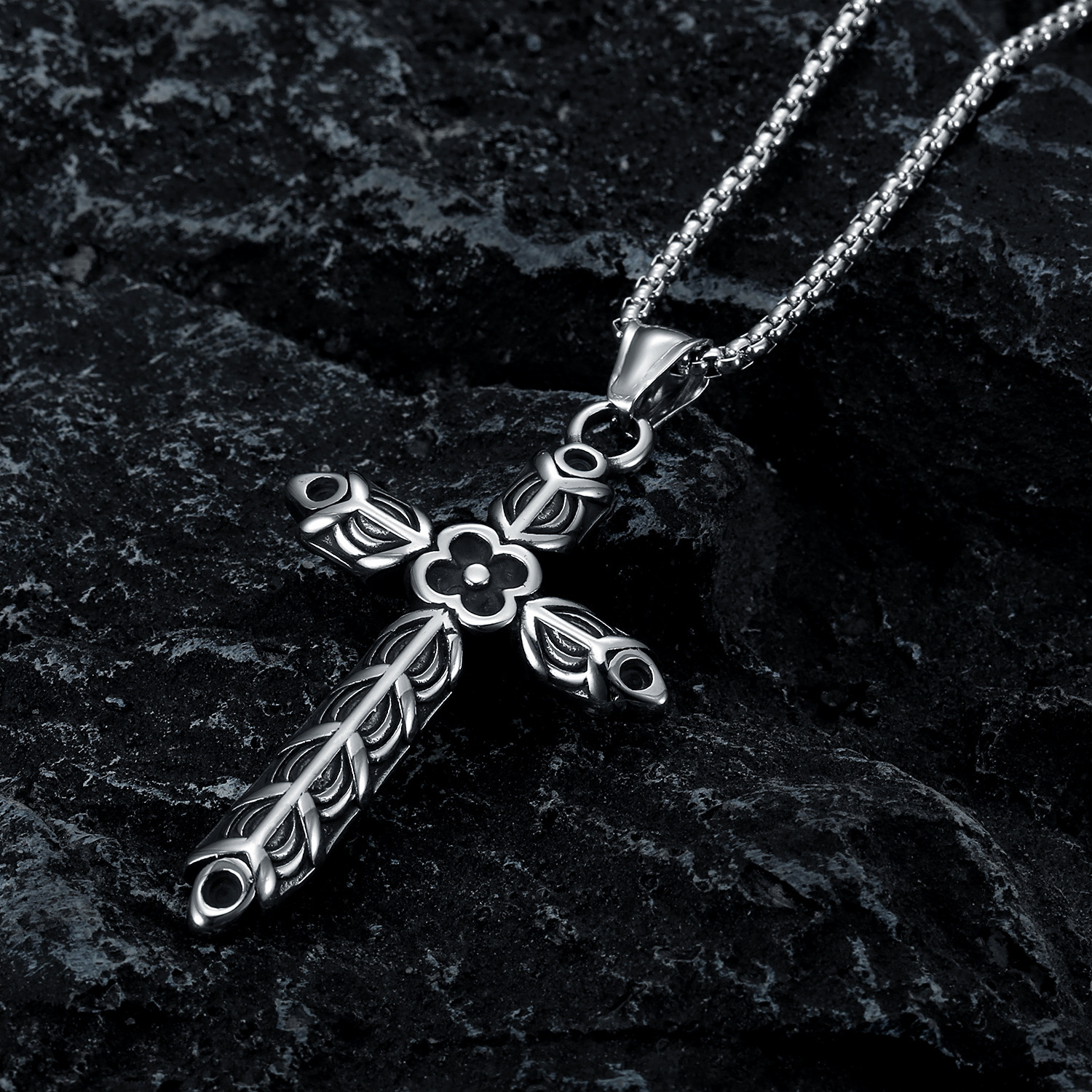 New Viking Cross Flower Punk Men’s Necklace