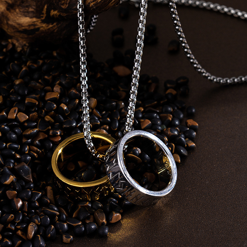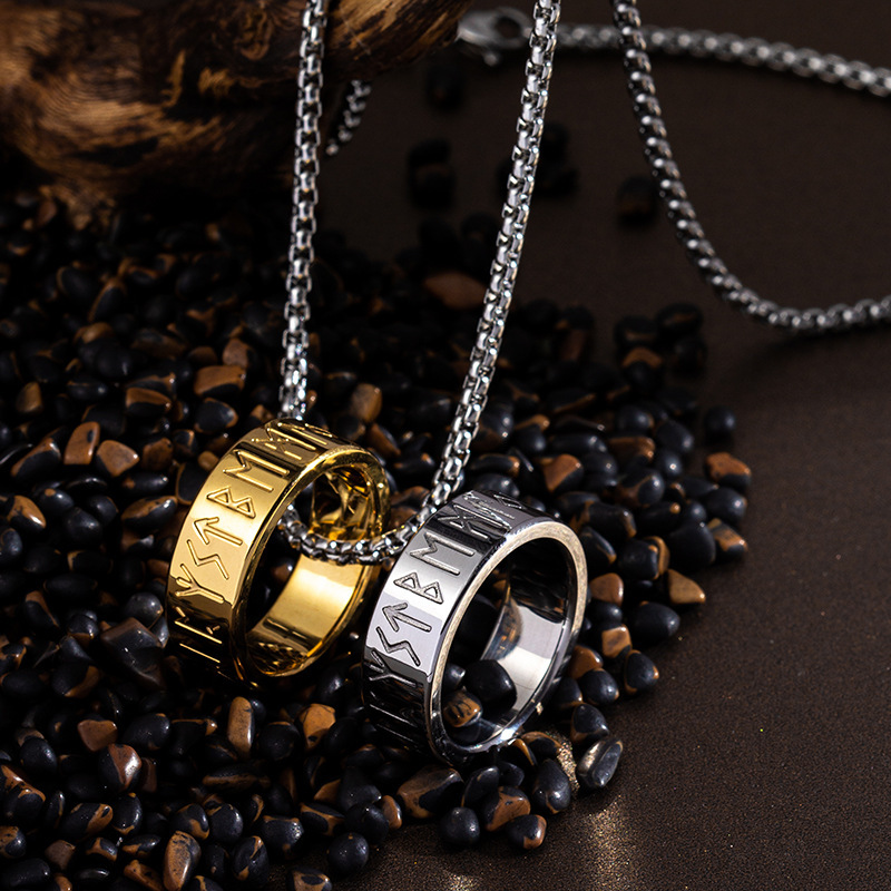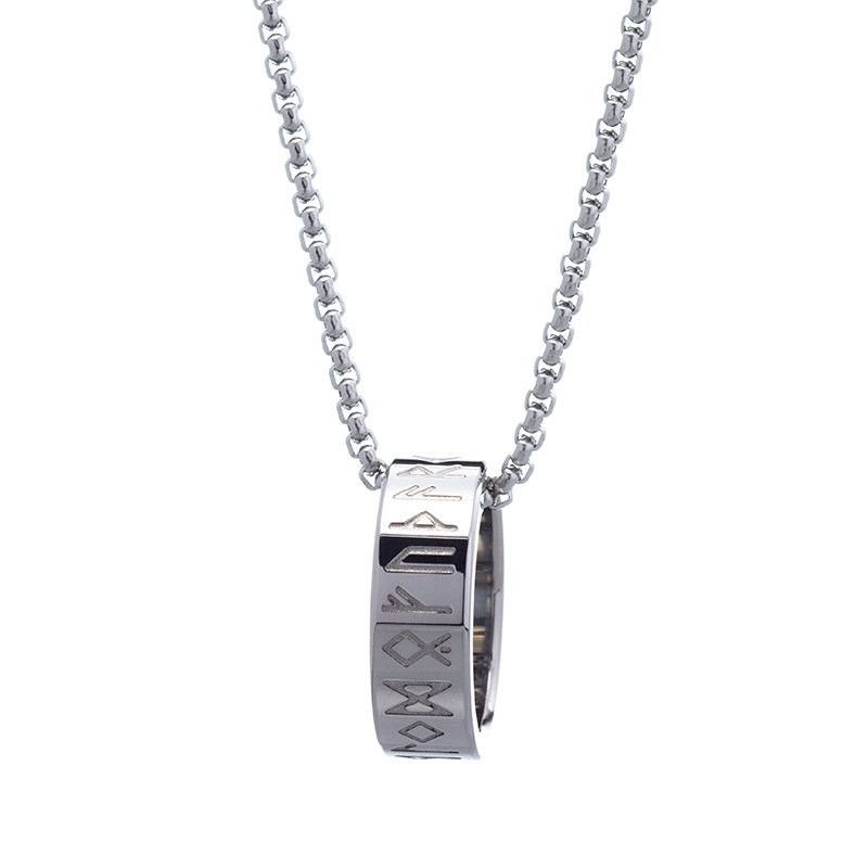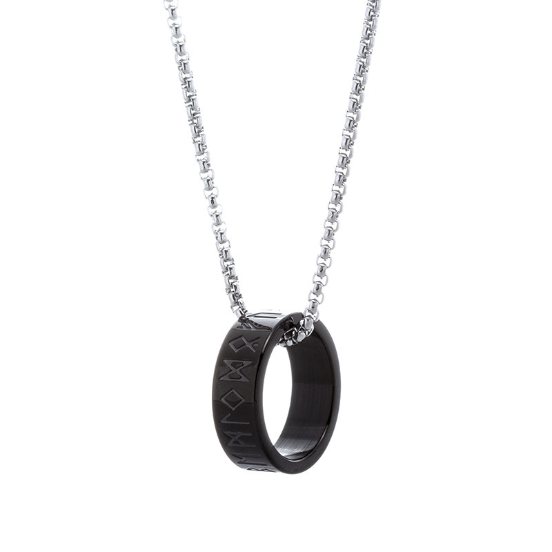 Nordic Mythology Viking Text Ornament Luen Rune Men’s Titanium Steel Necklace