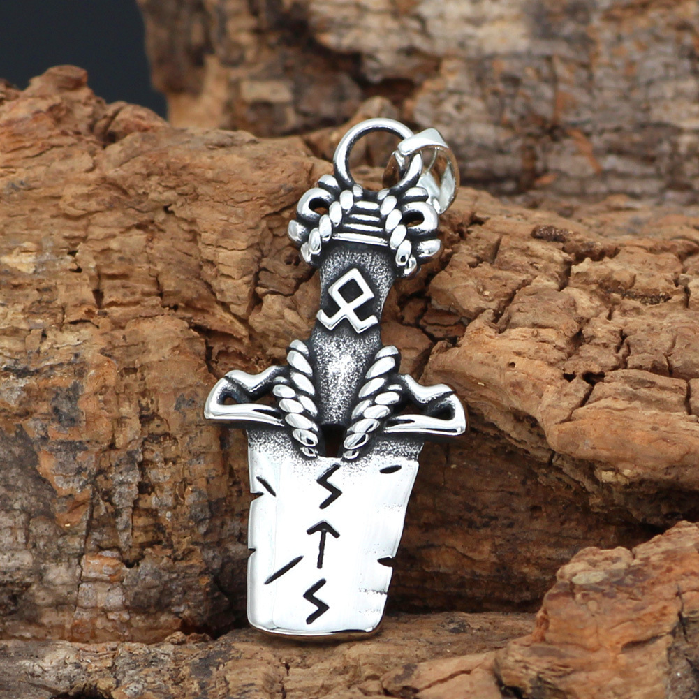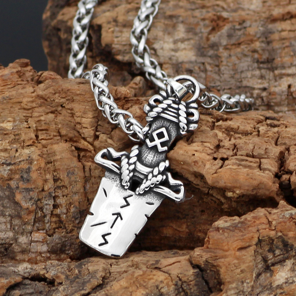 Nordic Viking Audinluna Rune Sword Titanium Steel Necklace