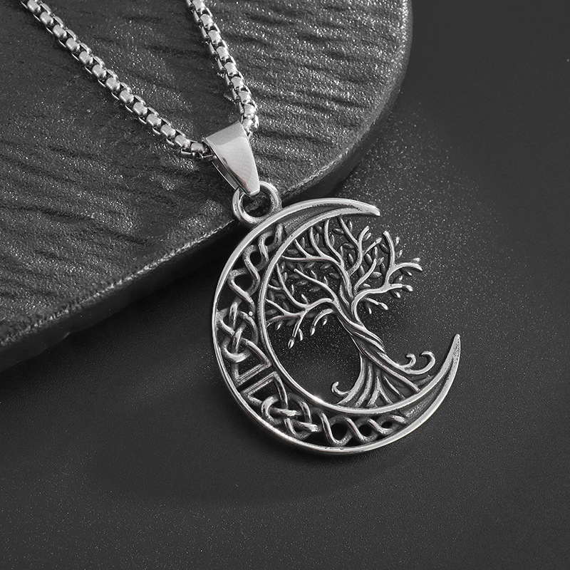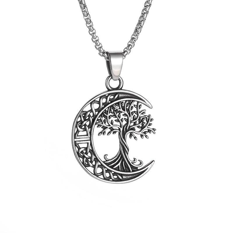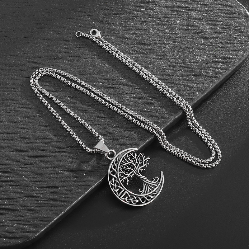 Color: lucky tree moon necklace-steel color