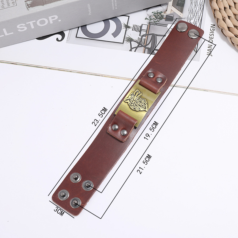 Nordic Viking Cowhide Bracelet Celtic Wolf Head Male