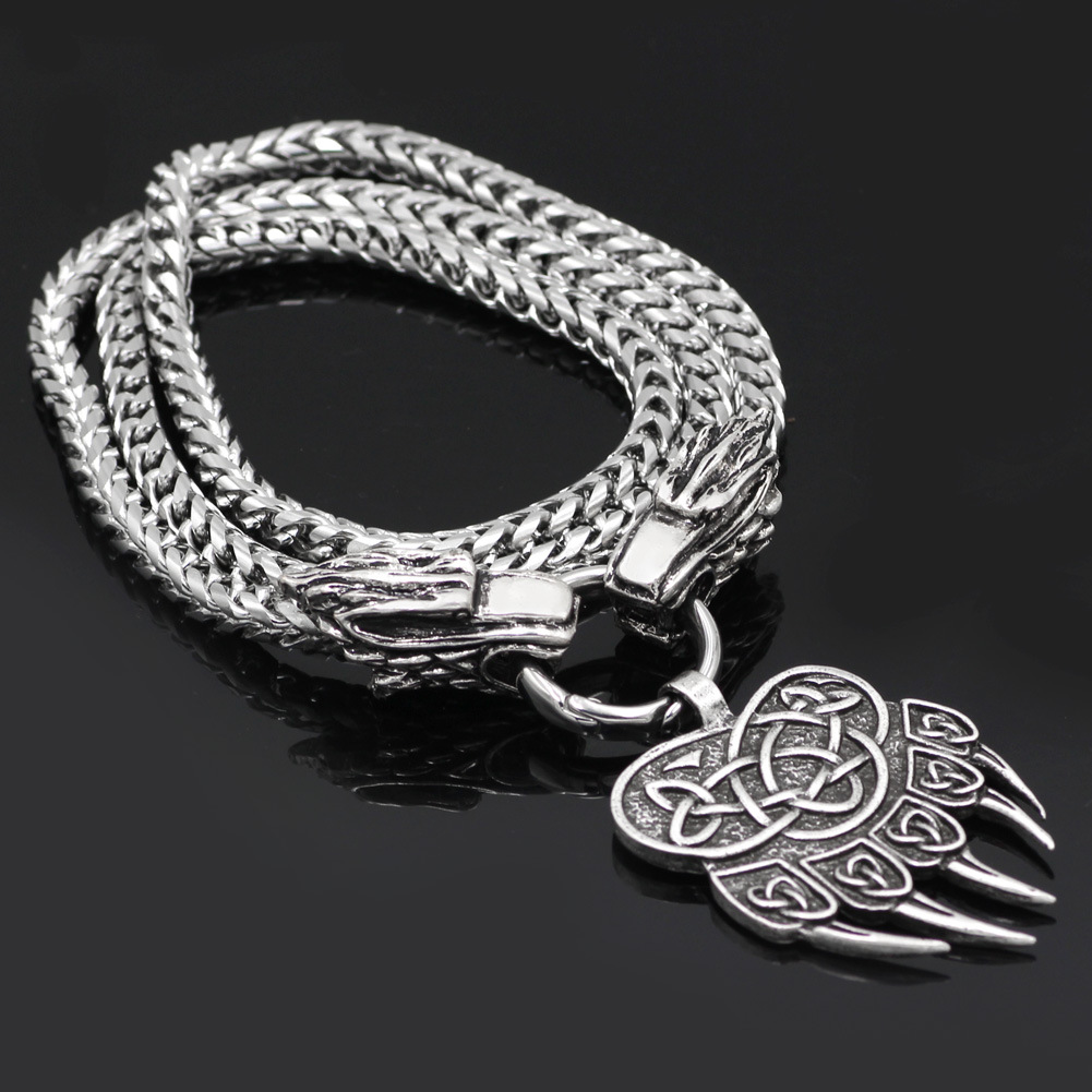 Nordic Viking Guardian Totem Bear Claw Titanium Steel Men’s Necklace