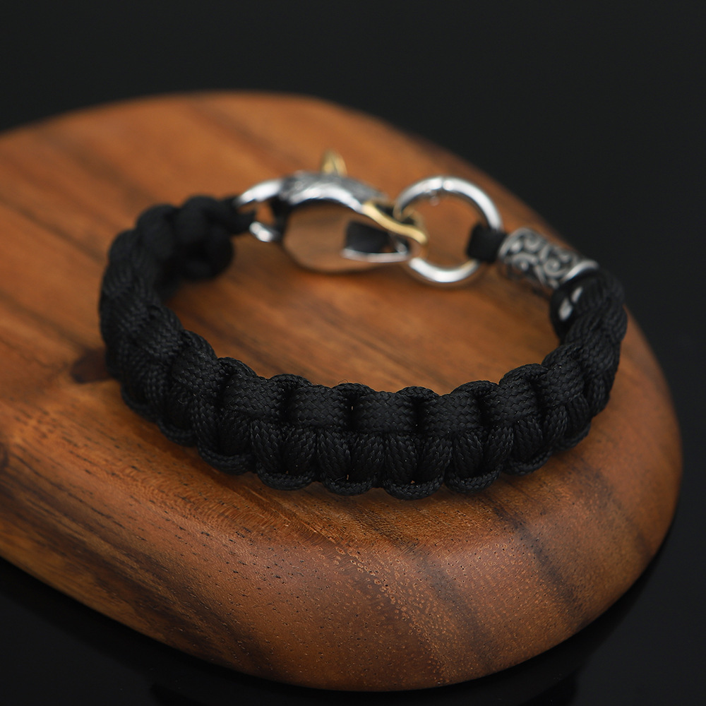 Norse Viking Mythology Stainless Steel Paracord Wolf Head Bracelet
