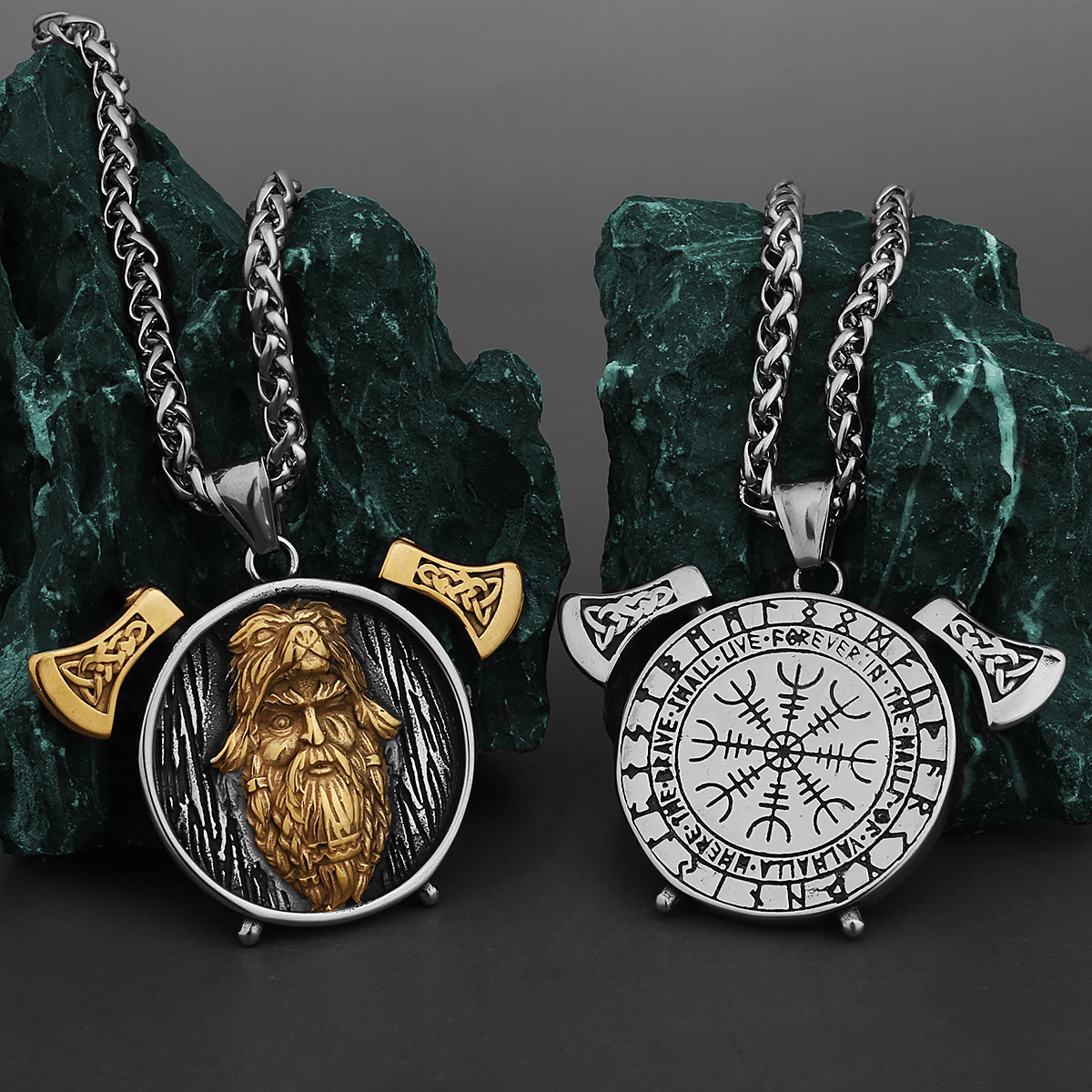 Pendentif Viking Inter Gold Double Axe En Acier Inoxydable