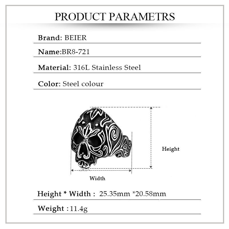 This unique 316L stainless steel Norse Skull Ring was handcrafted with careful attention to detail and design. The intricate skull pattern pulls inspiration from Norse mythology and is sure to stand out in any outfit. The skull design is finely polished and sits atop a smooth stainless steel band for added comfort. This ring is the perfect accessory for any man wanting to show off his Norse lore flair.