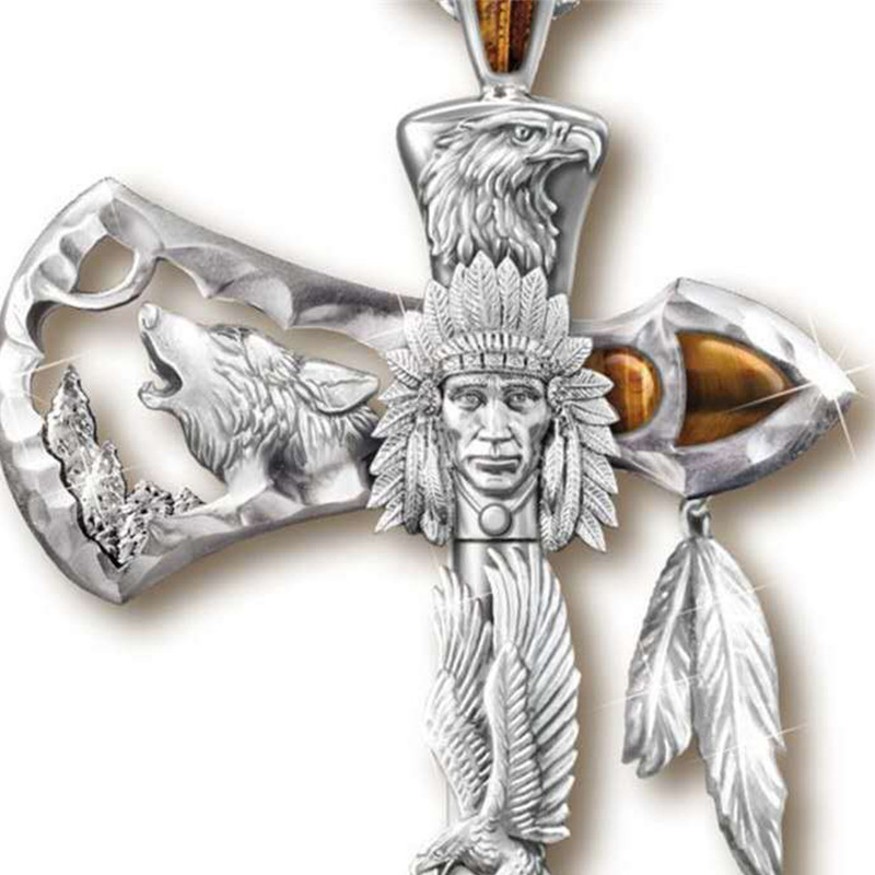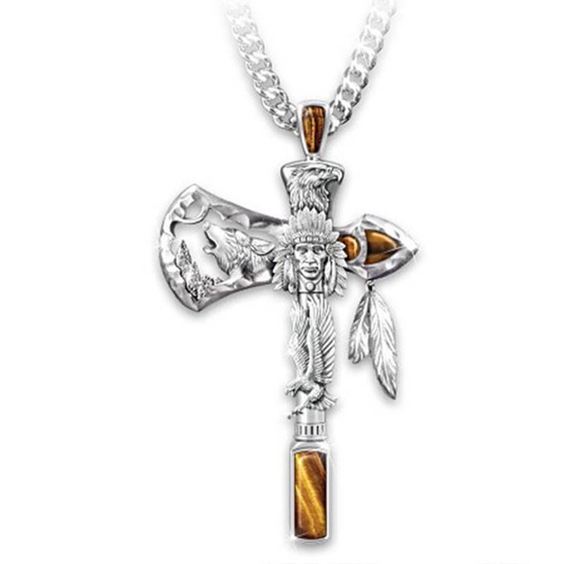 Personality Necklace Wolf Head Eagle Animal Alloy Axe Pendant