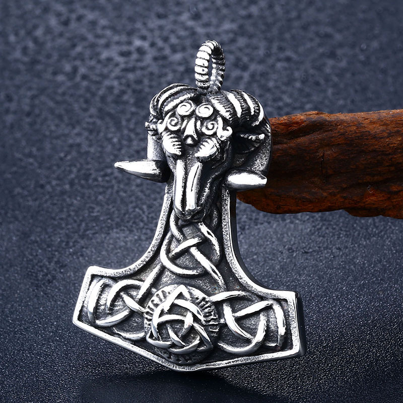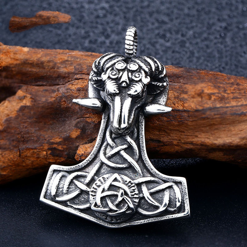 Punk Sheep Head Viking Retro Stainless Steel Pendant Mens Pendant