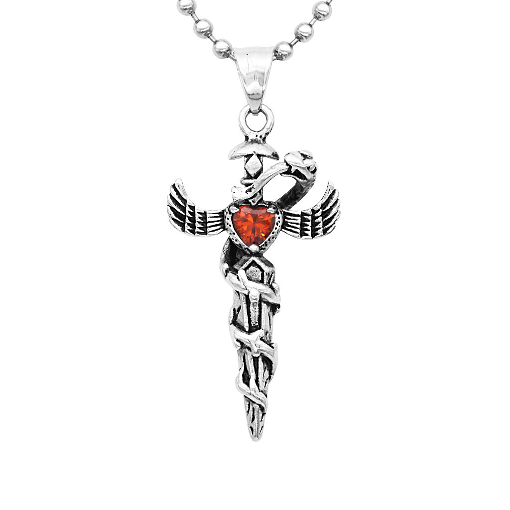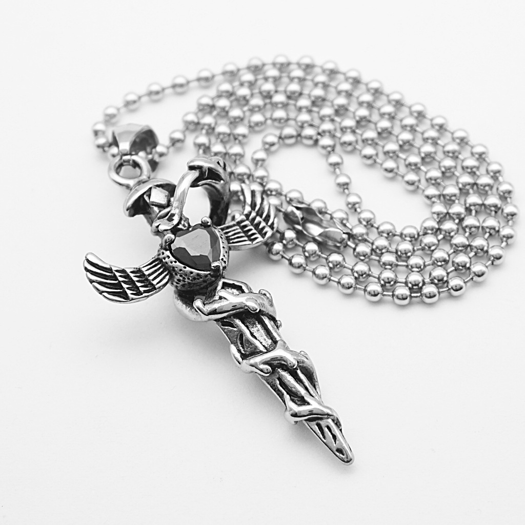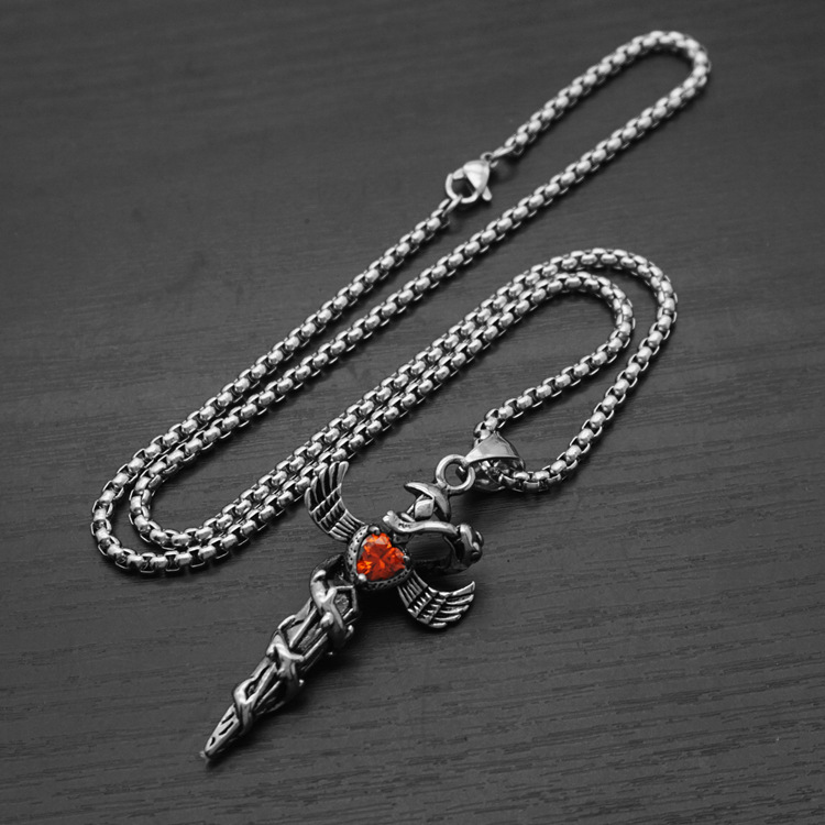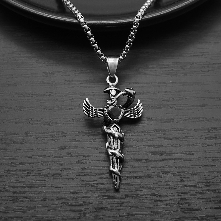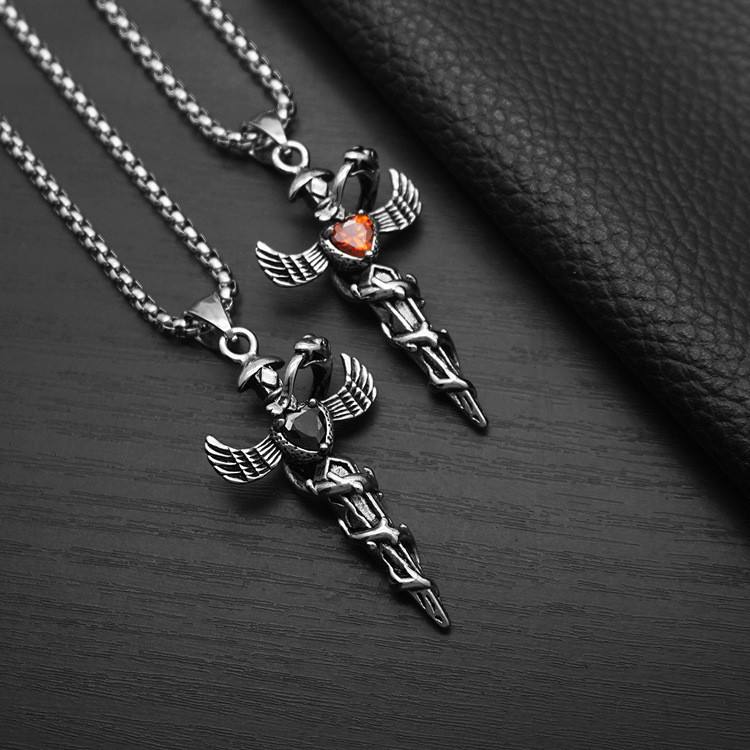 Retro Fashion European And American Style Diecast Snake Winding Wings Cross Titanium Steel Necklace Heart-shaped Diamond Pendant