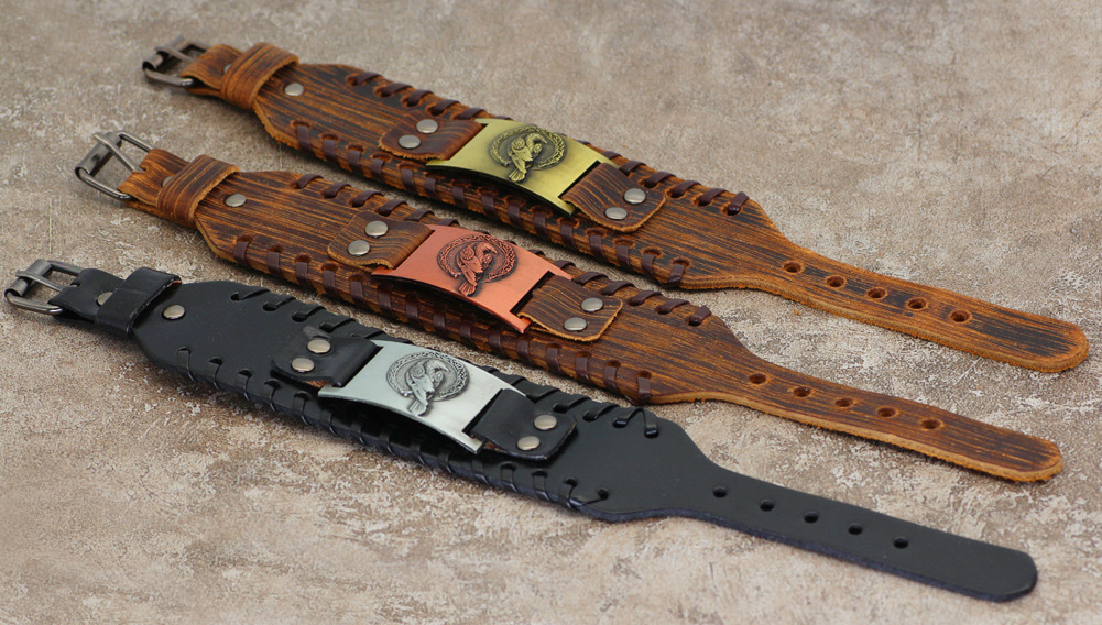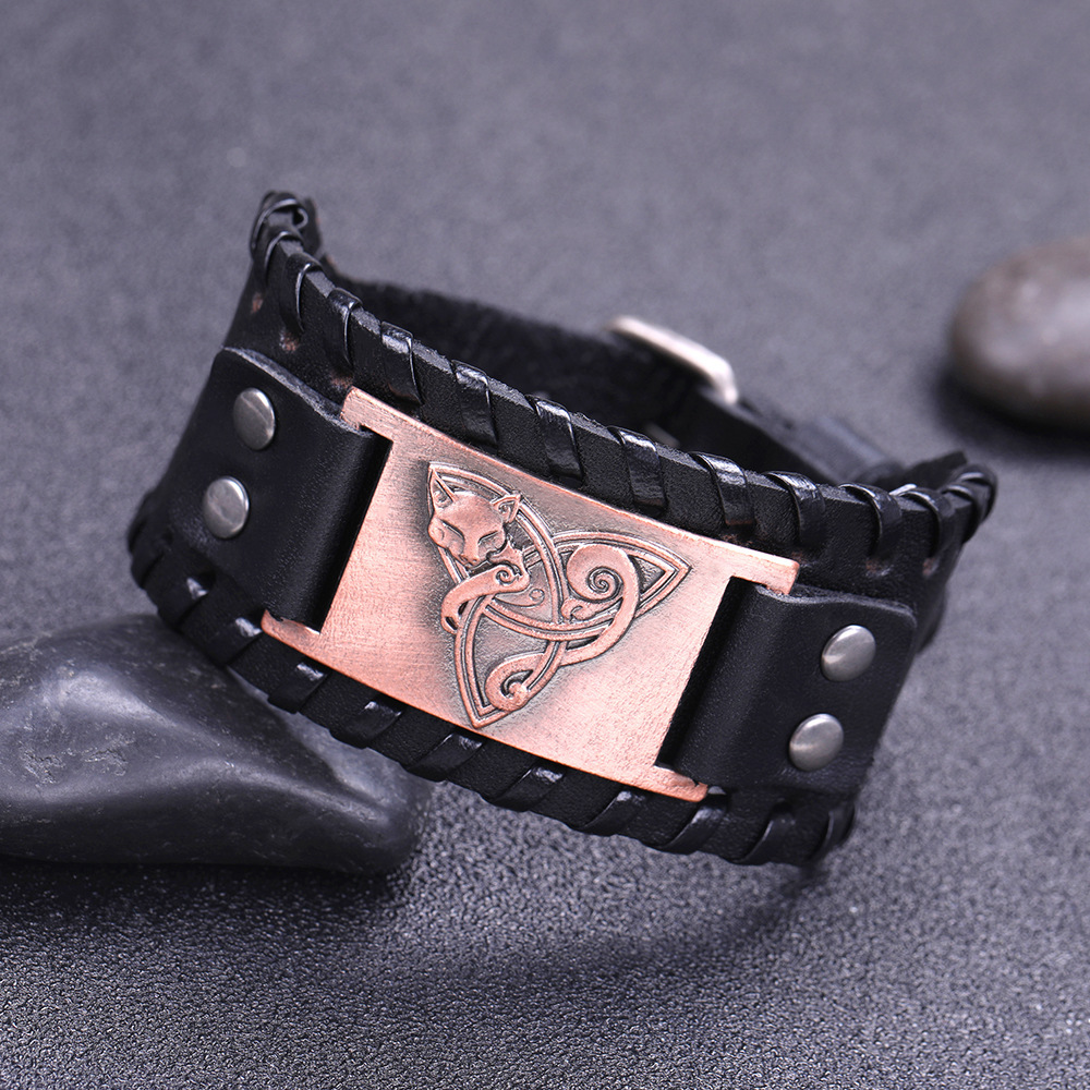 Retro Nordic Viking Totem Bracelet Cowhide Bracelet