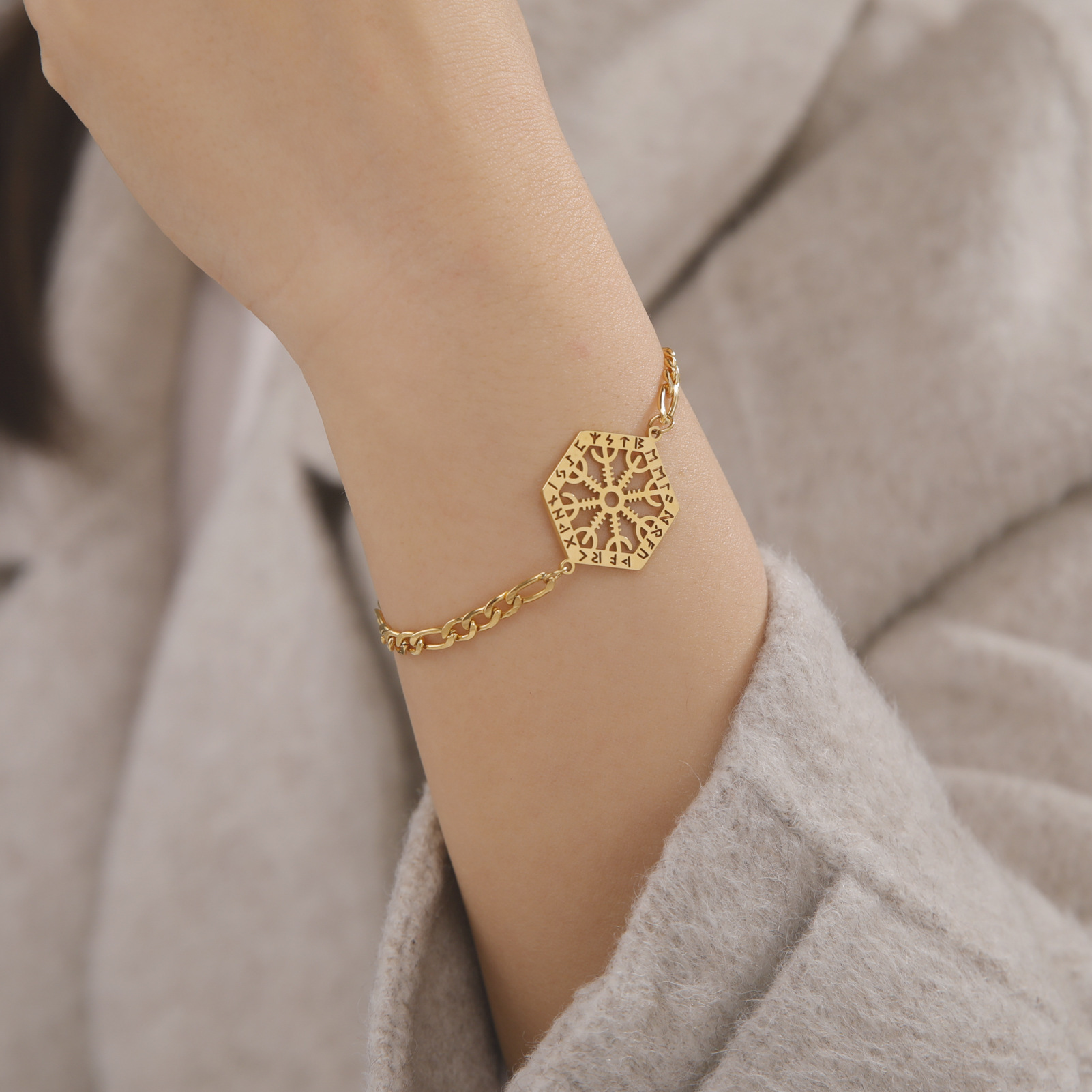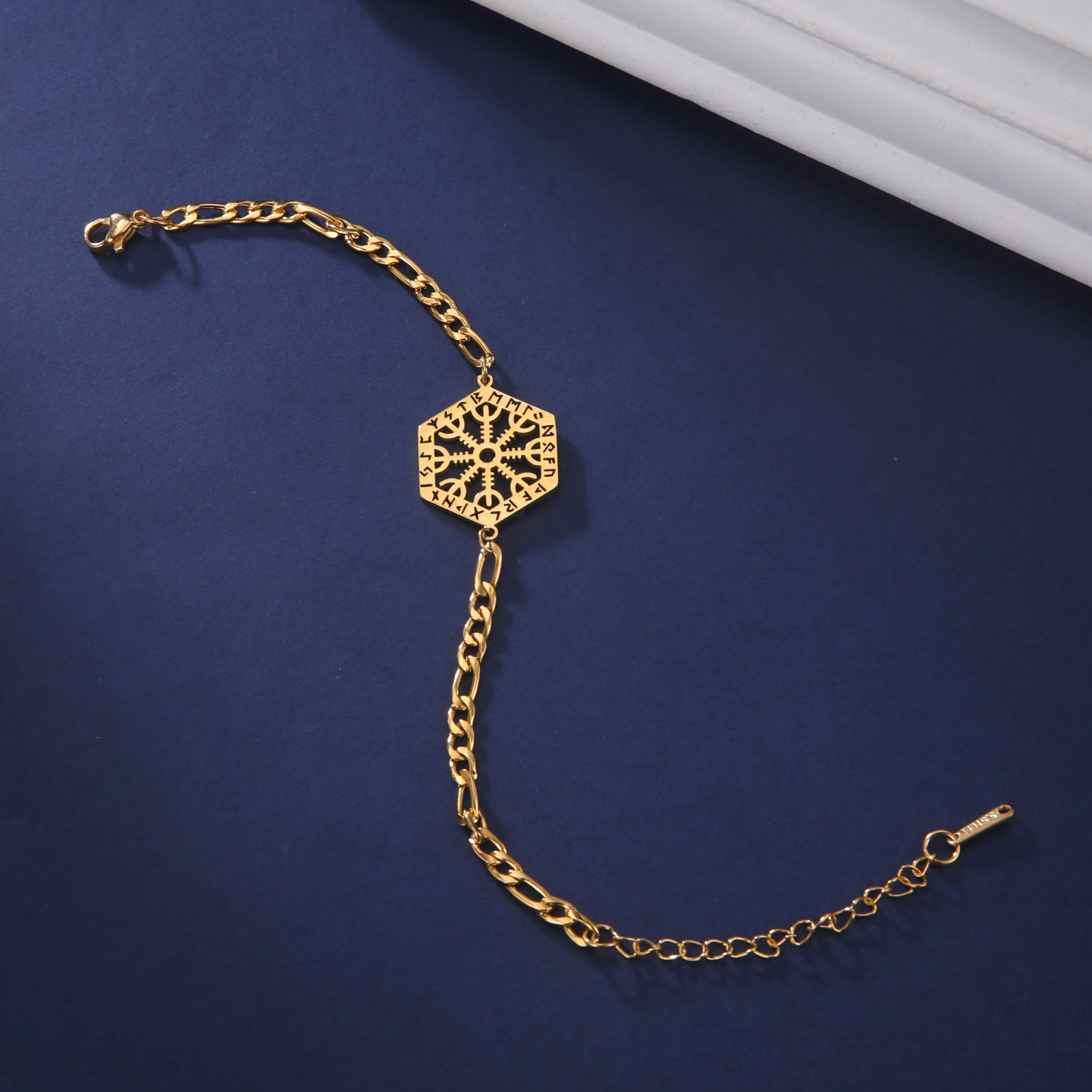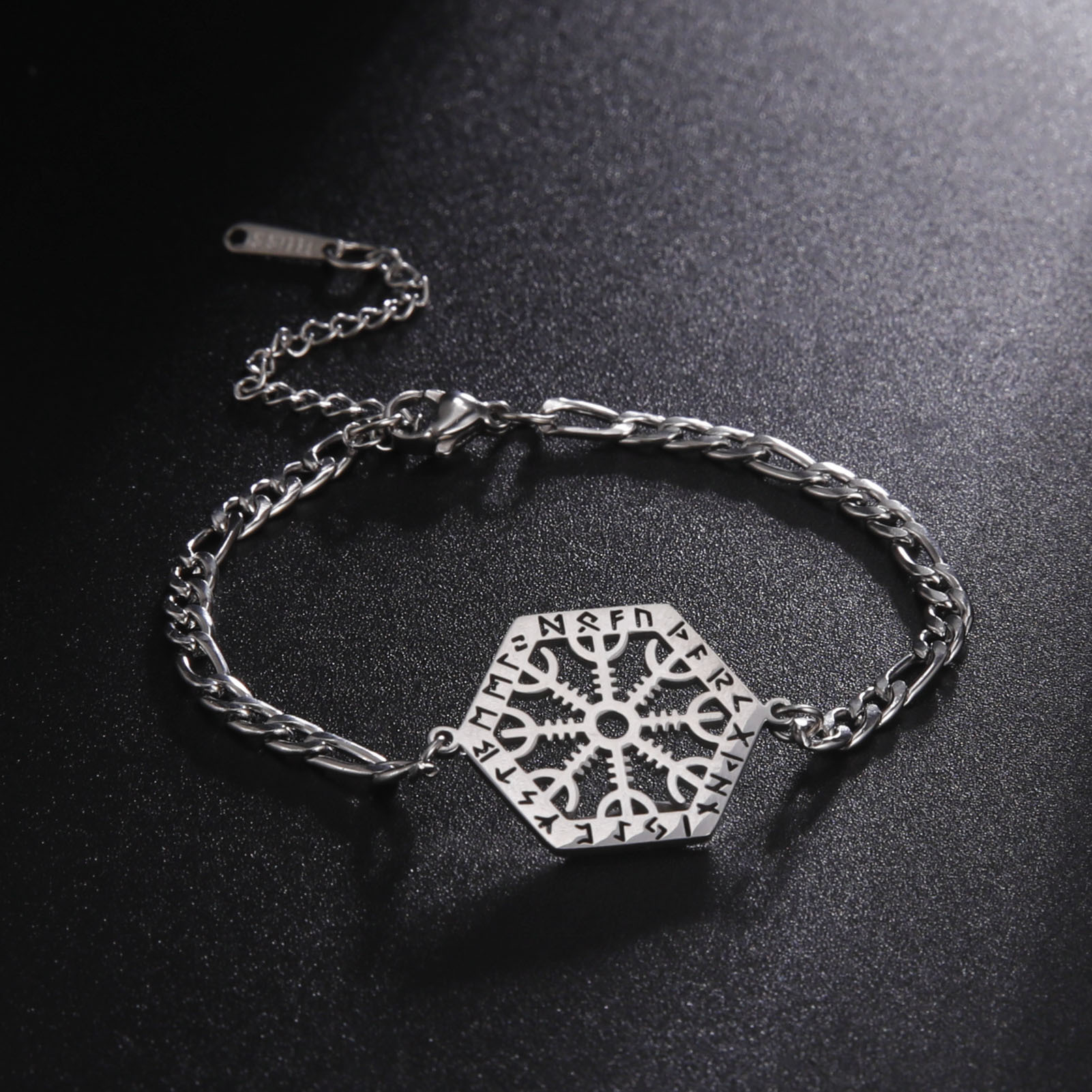 Retro Pirate Totem Viking Rune Pendant Figaro Chain Bracelet