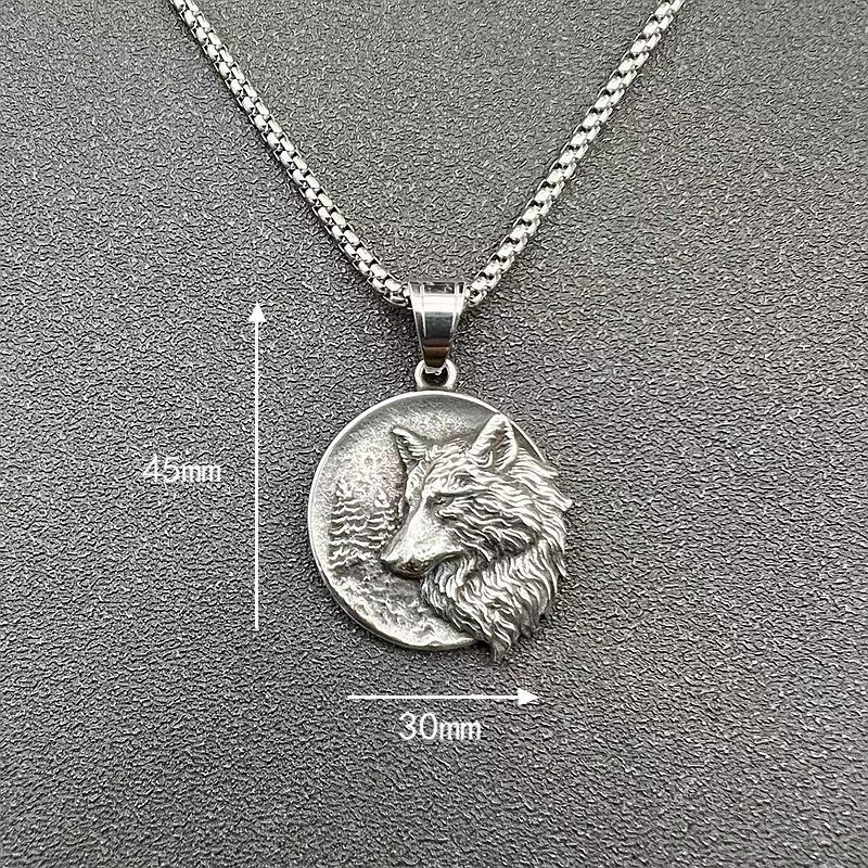 Retro Titanium Steel Viking Wolf Head Pendant