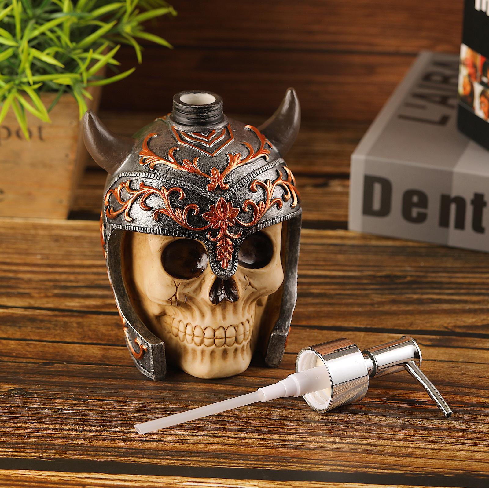 Retro Viking Skull Resin Liquid Dispensing Bottle