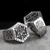 Runes Text Cuban Chain Ring – Silver Black Gold – Stainless Steel