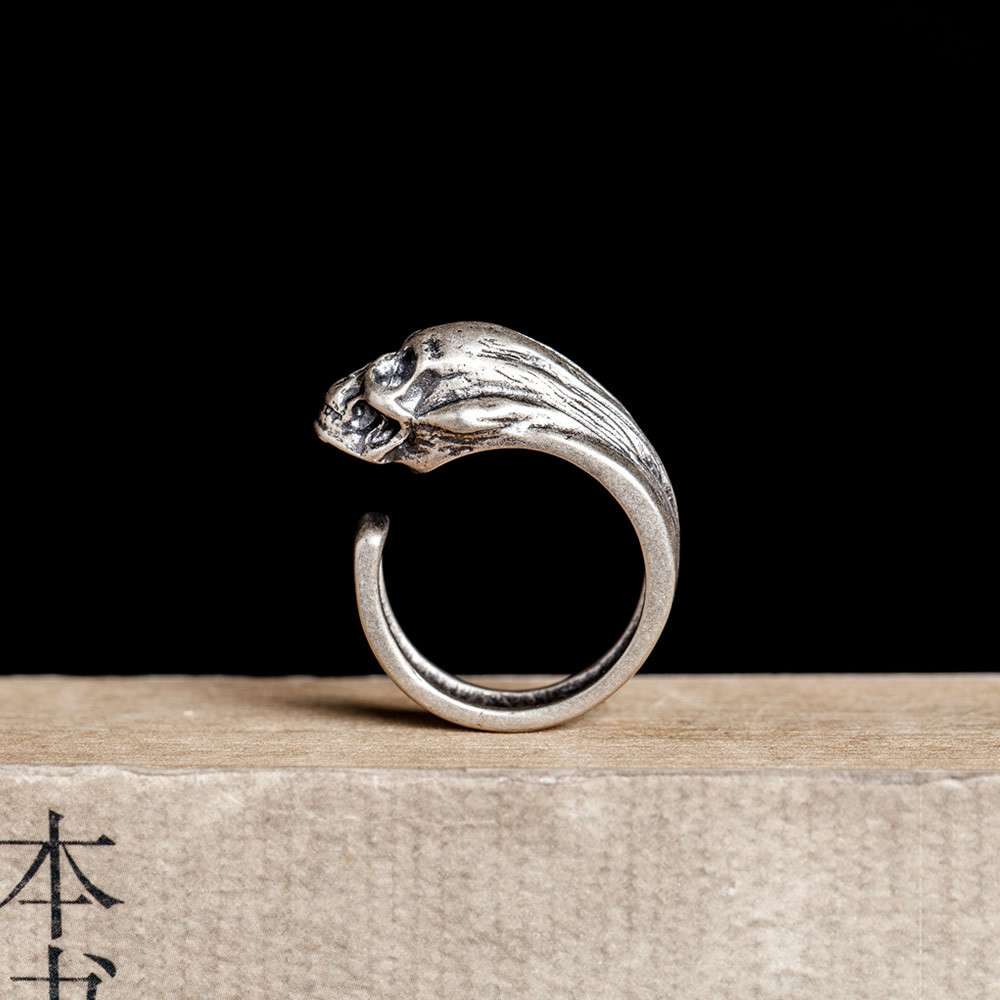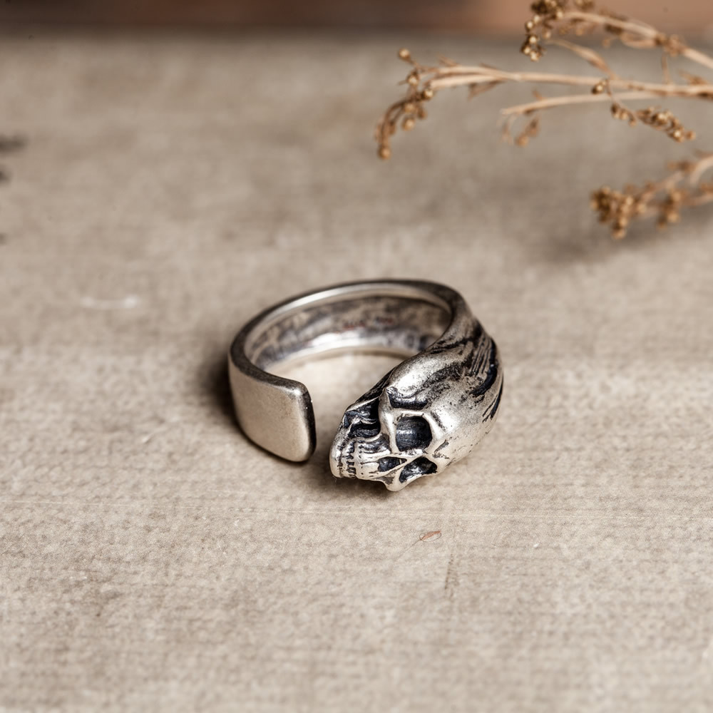S925 Sterling Silver Distressed Dark Soul Skull Ring