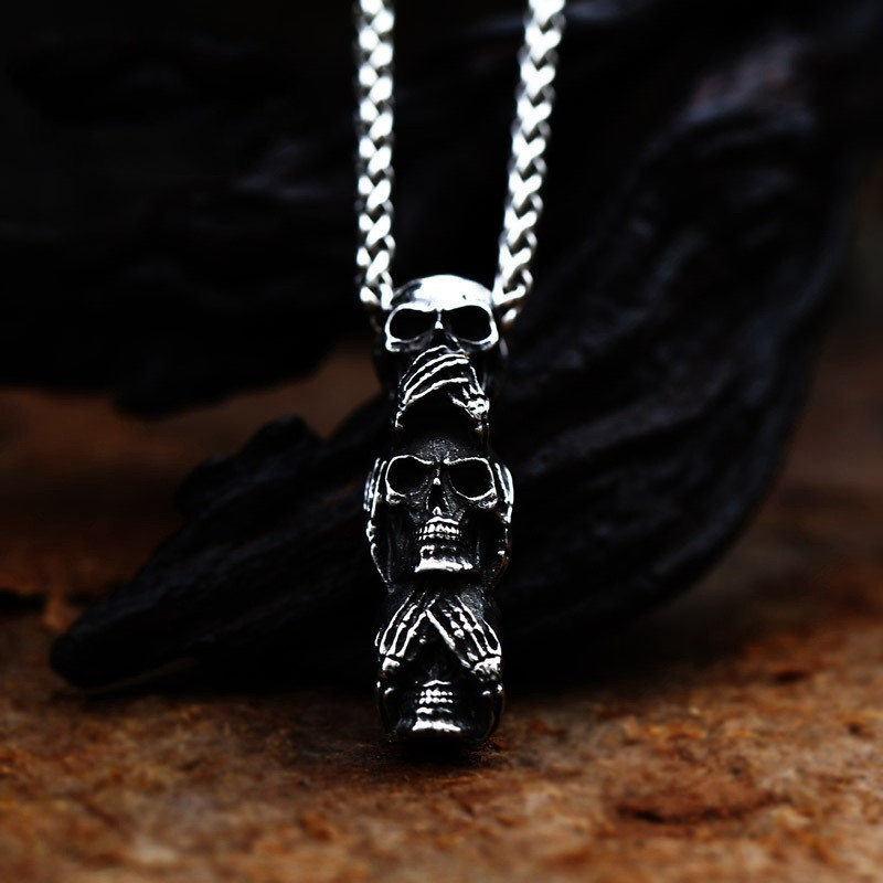 See No Evil Speak No Evil Skulls Pendant Necklace