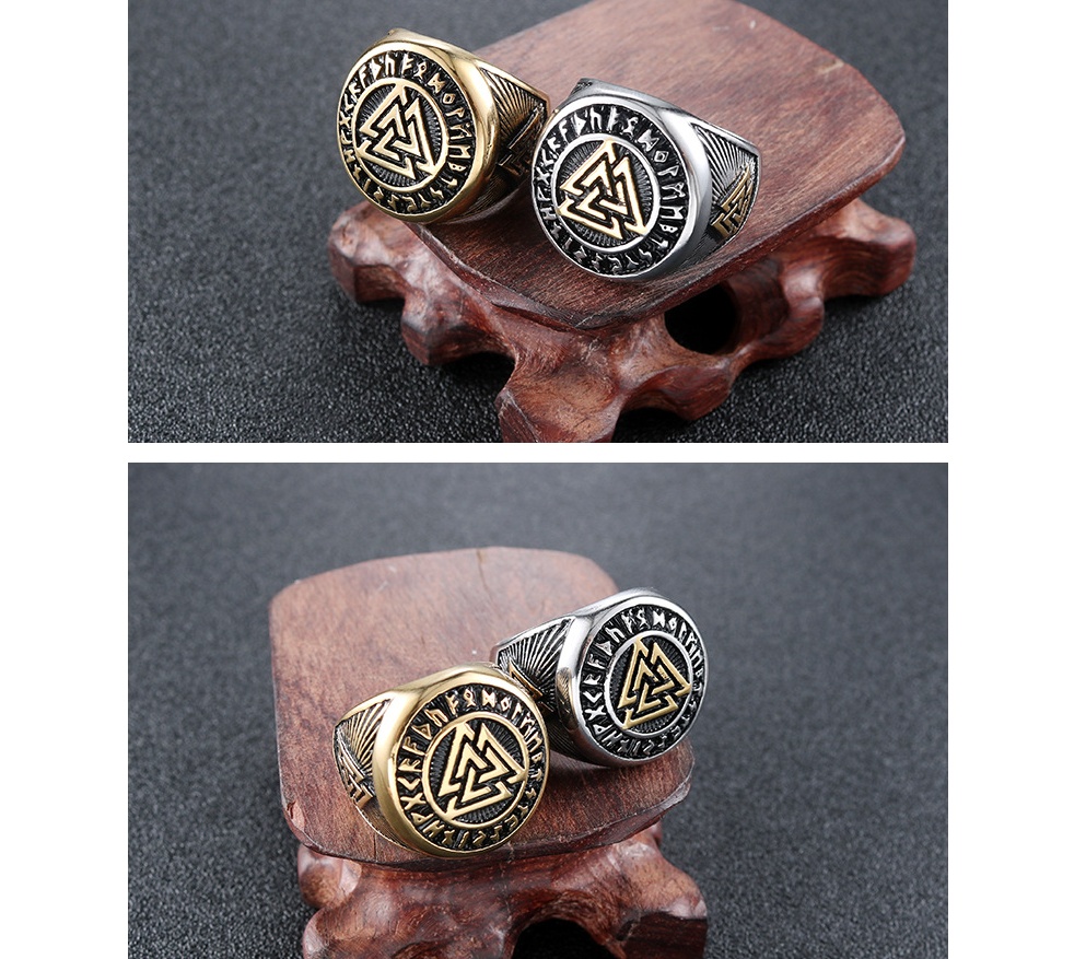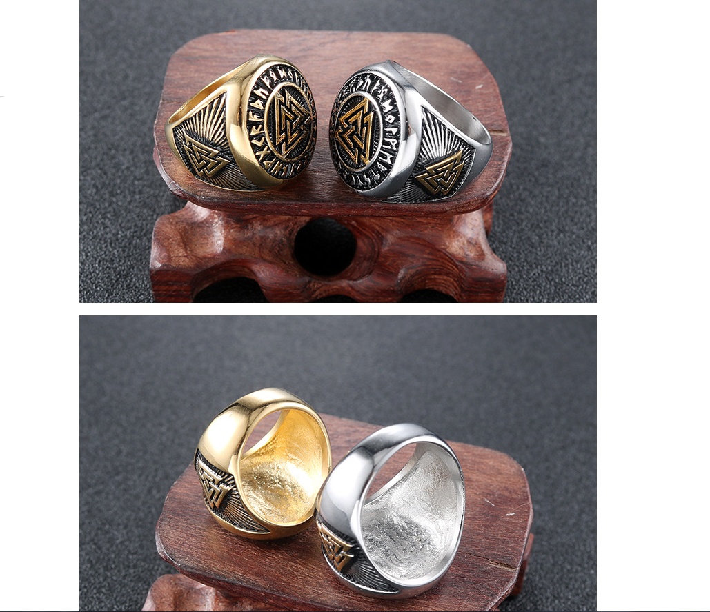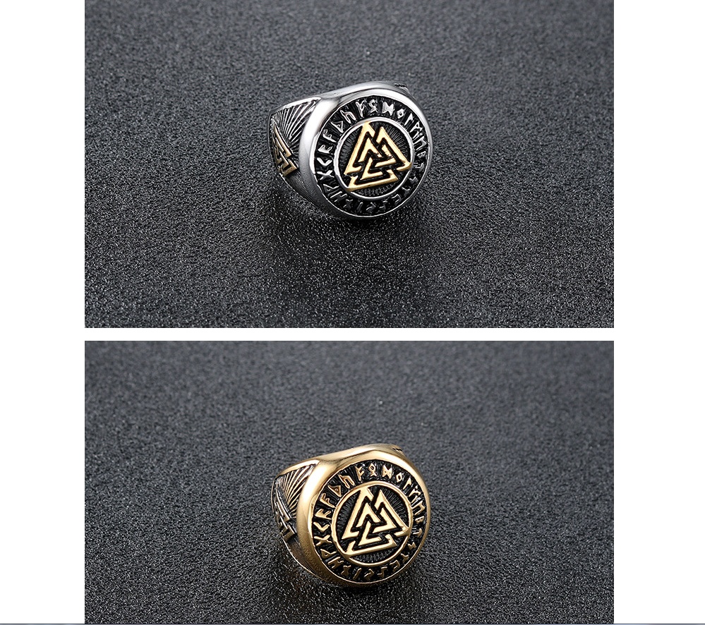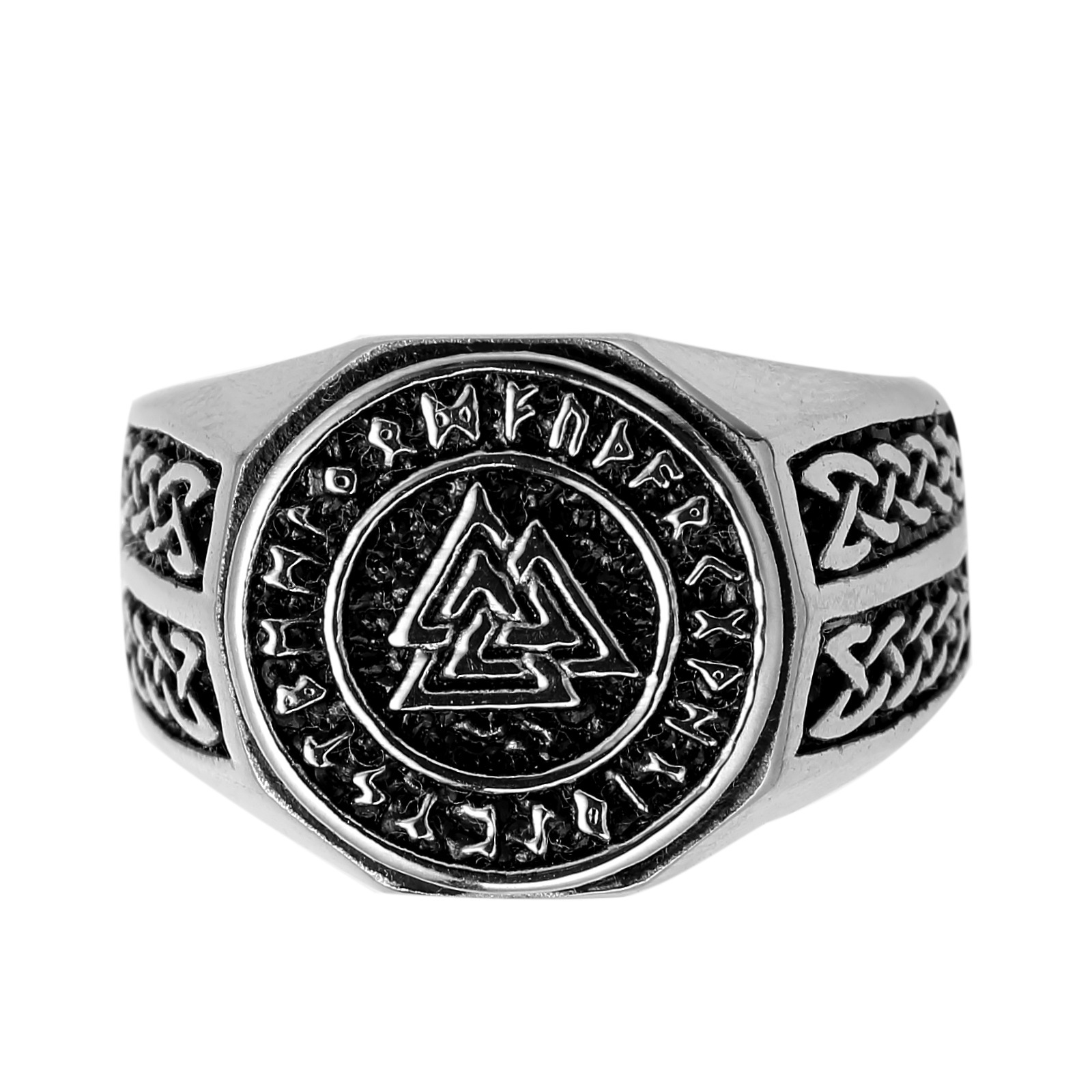 Stainless Steel Valknut Ring With Runic Symbol Halo