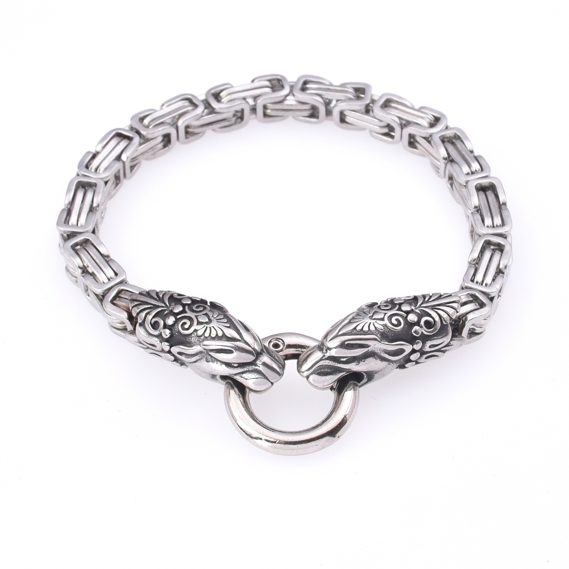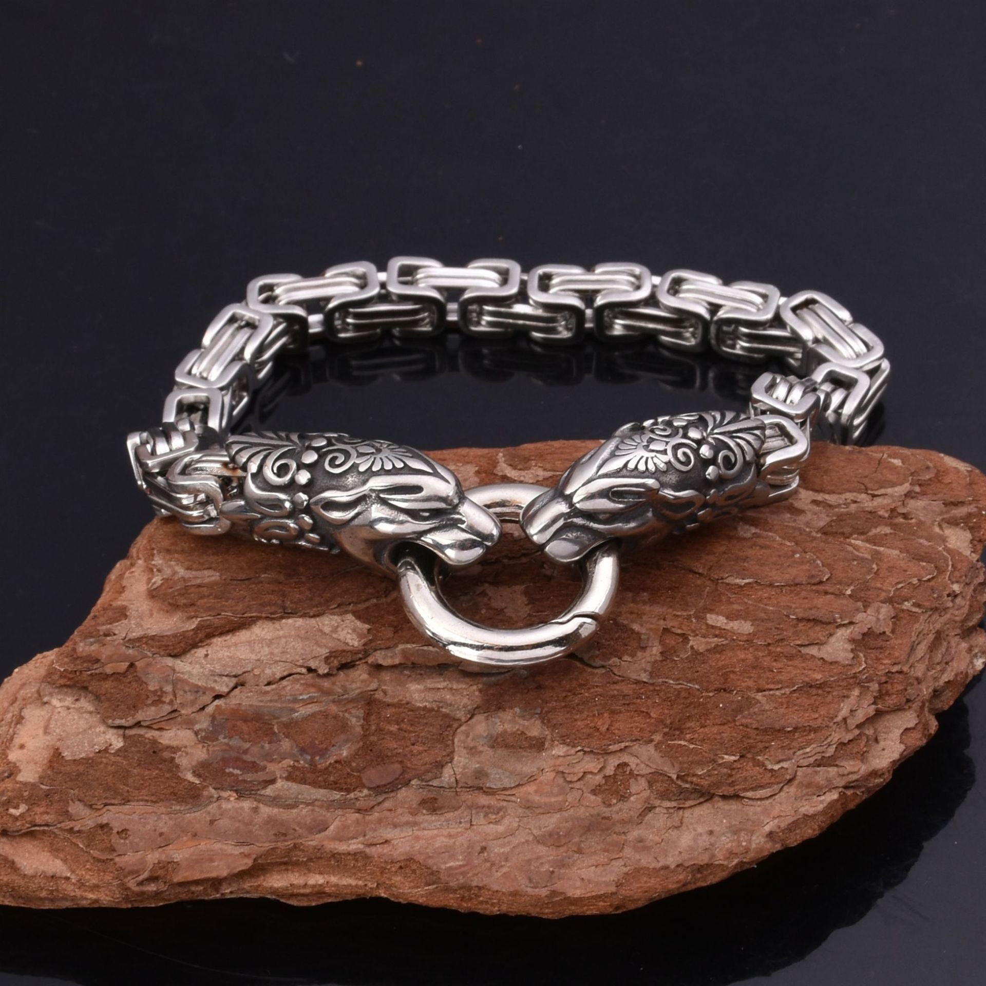 Stainless Steel Viking Wolf Head Leopard Head Bracelet