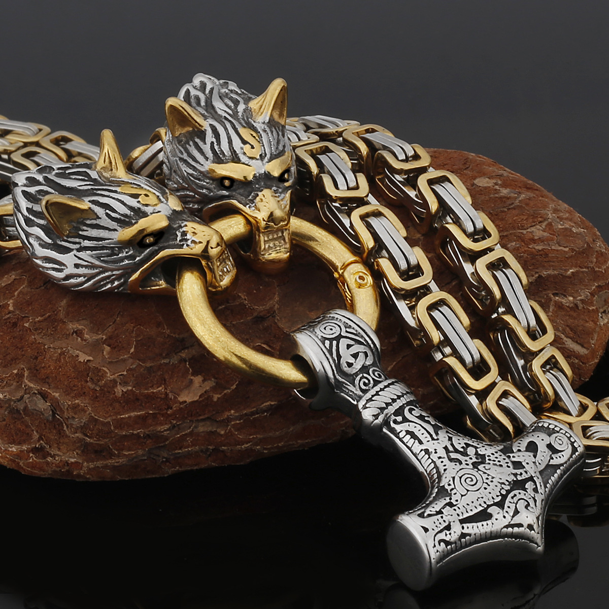 Stainless Steel Viking Wolf Head Quake Men’s Pendant Necklace