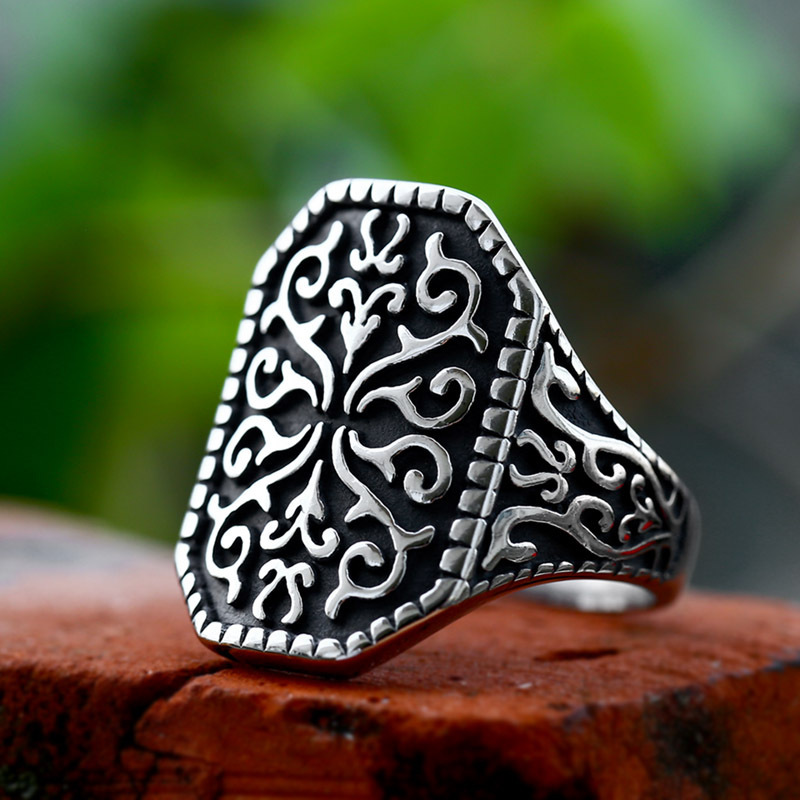 Titanium Steel Carved Pattern Men’s Ring