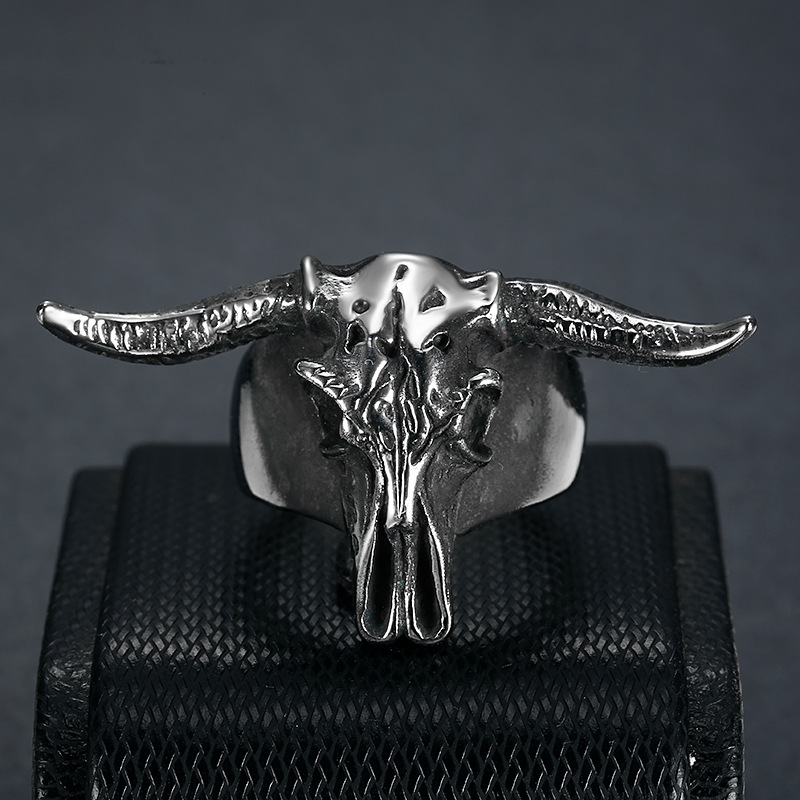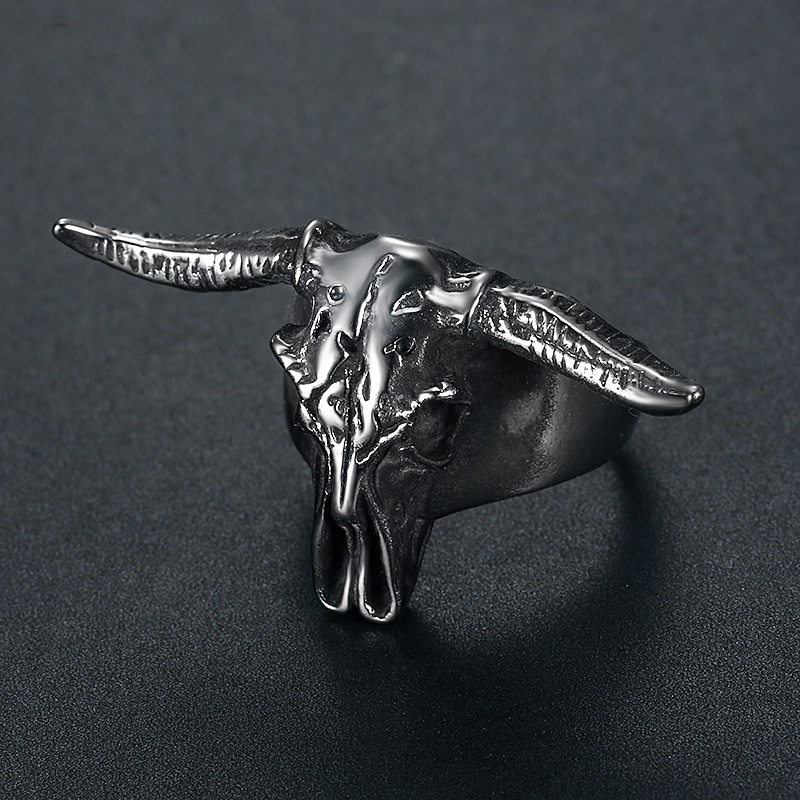 Titanium Steel Polished Vintage Aries Satan Ram Ring