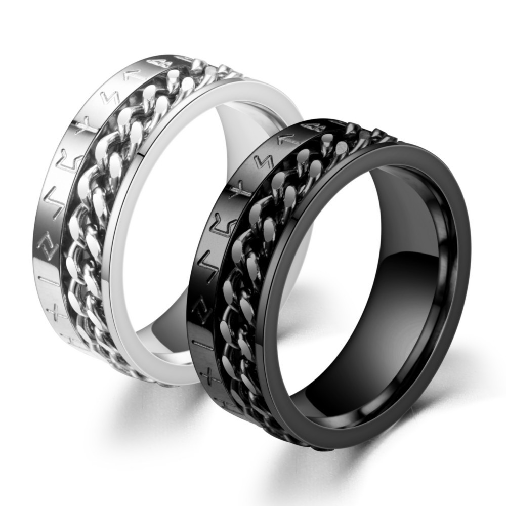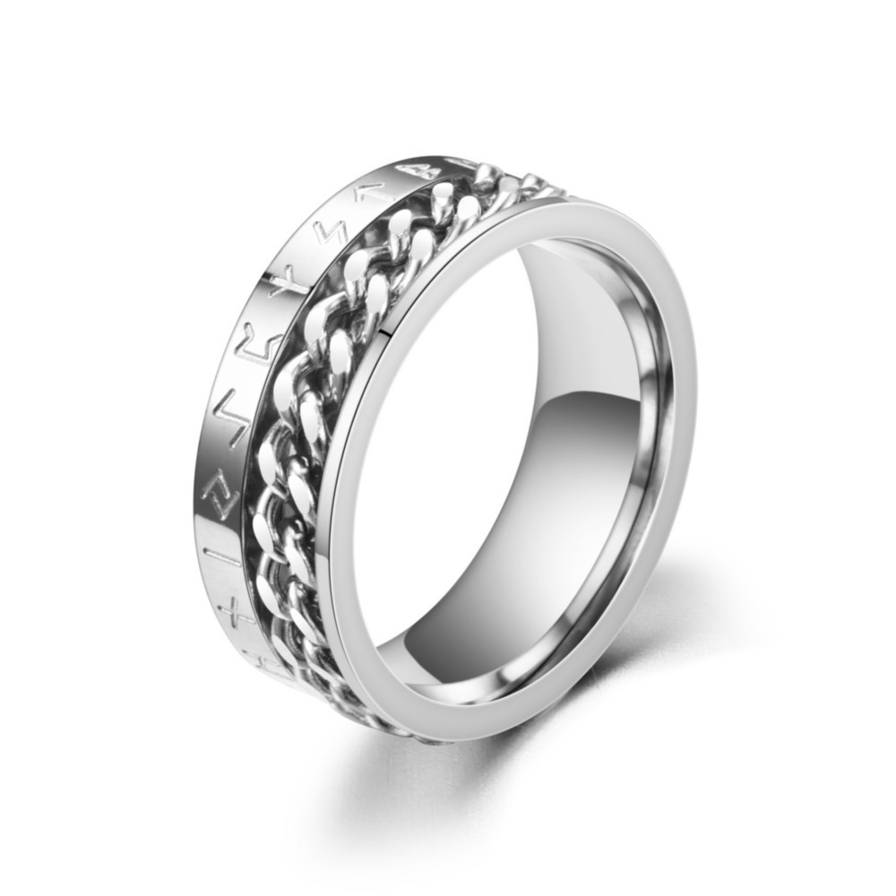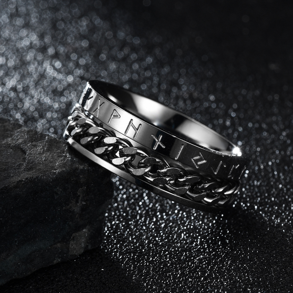 Viking Alphabet Chain Titanium Steel Ring Nordic Style