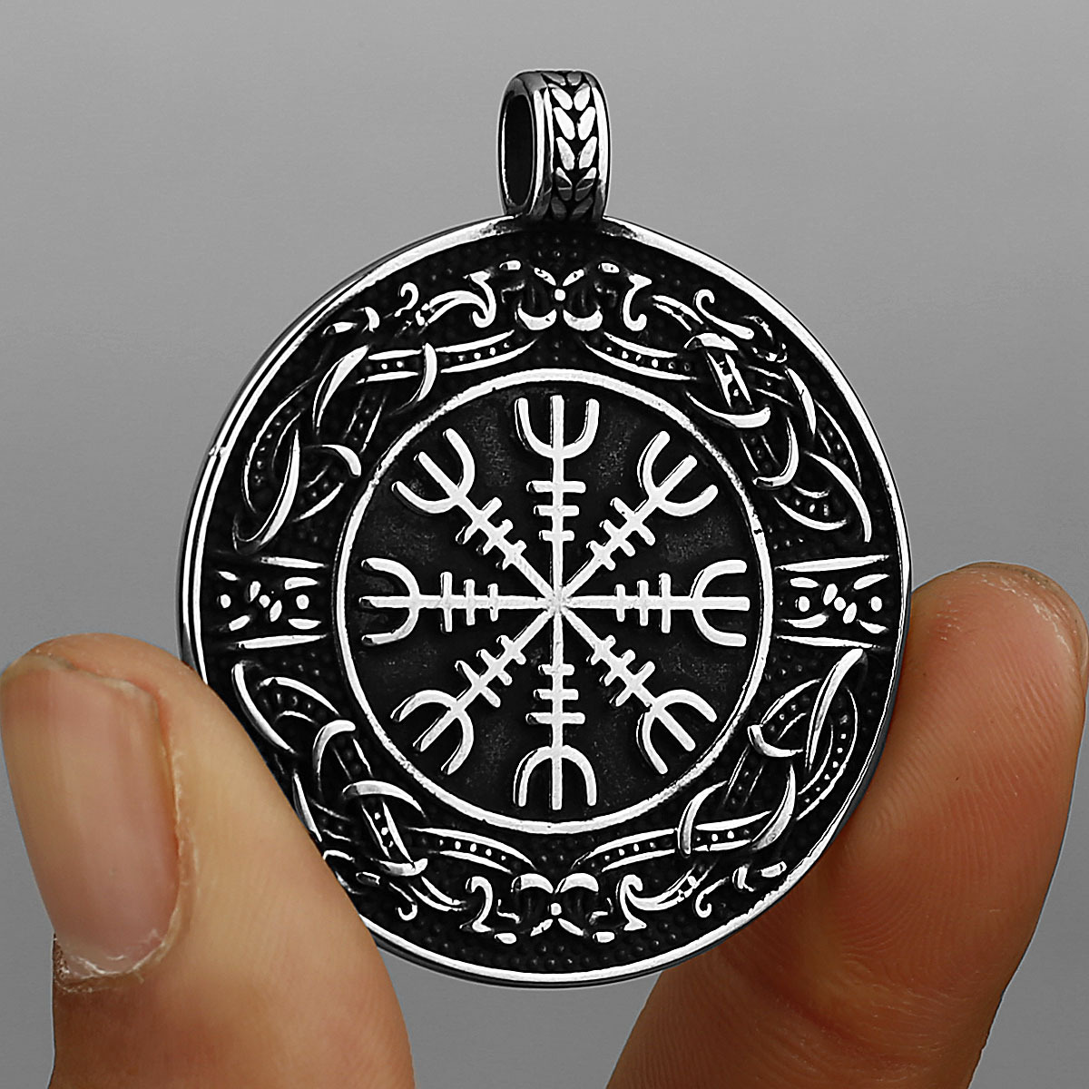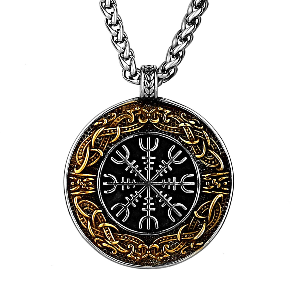 Viking Compass Round Men’s Stainless Steel Pendant Necklace
