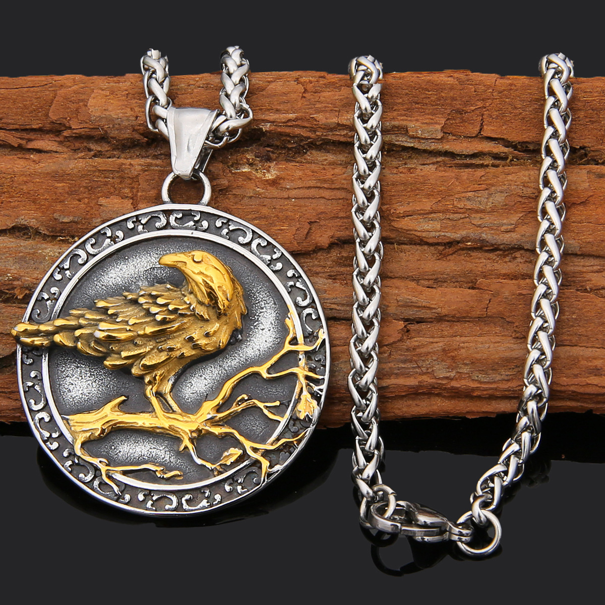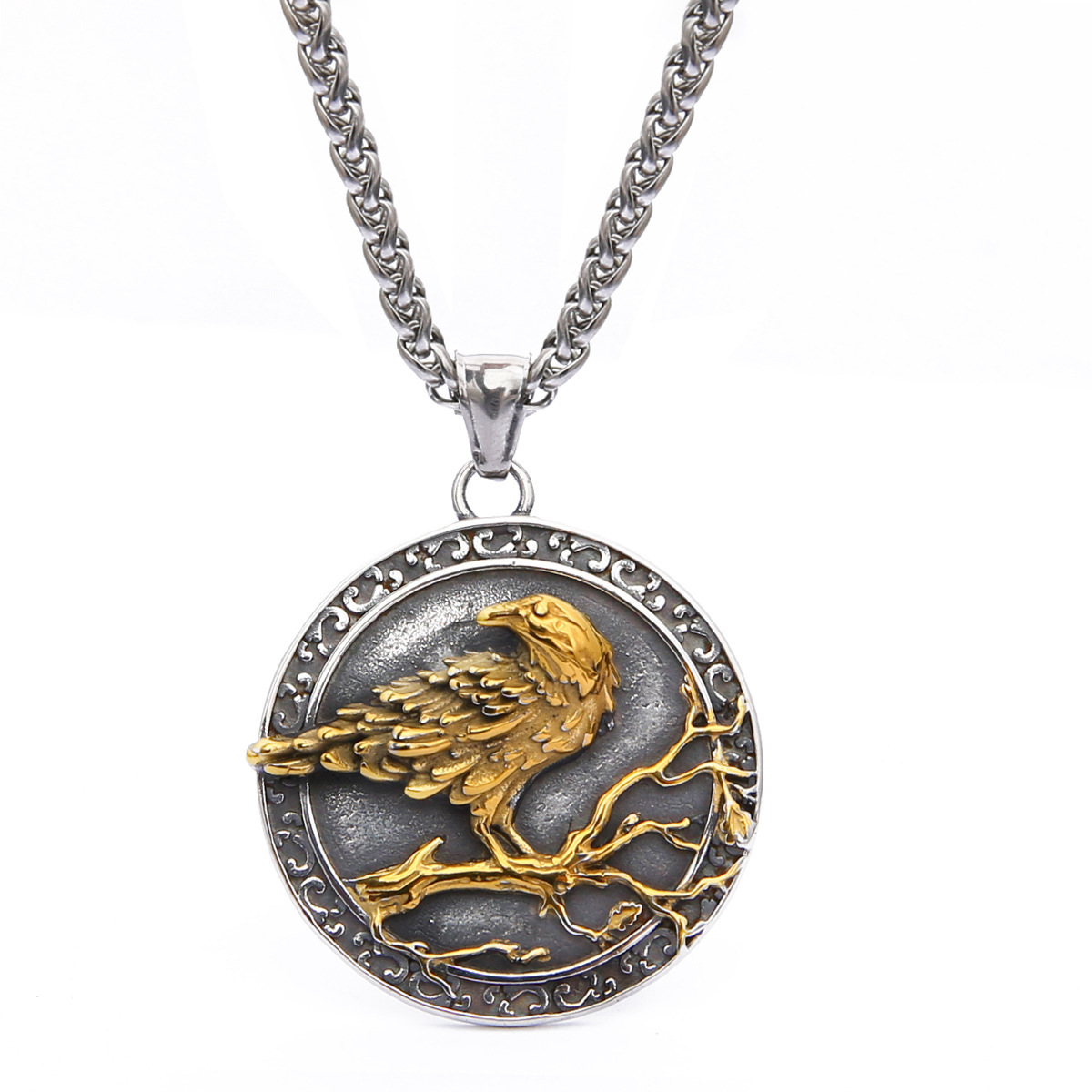 Viking Crow Bird Stainless Steel Pendant Necklace