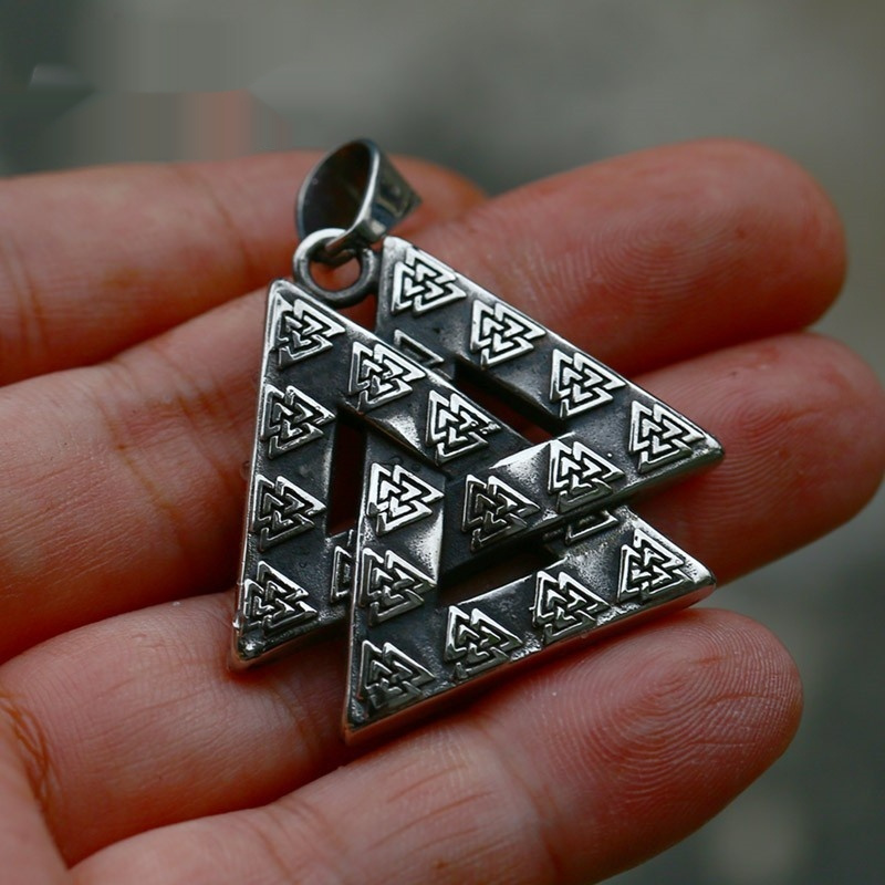 Viking Letter Titanium Steel Stacked Triangle Round Pendant
