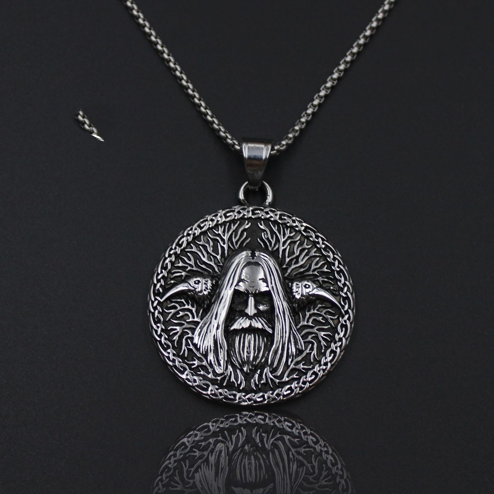 Viking Old Head Statue Pendant Men’s Titanium Steel Necklace