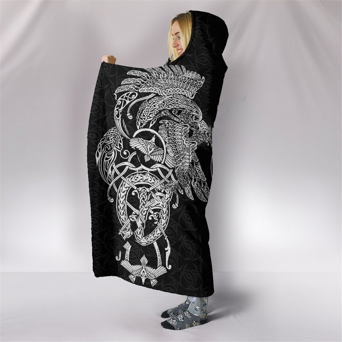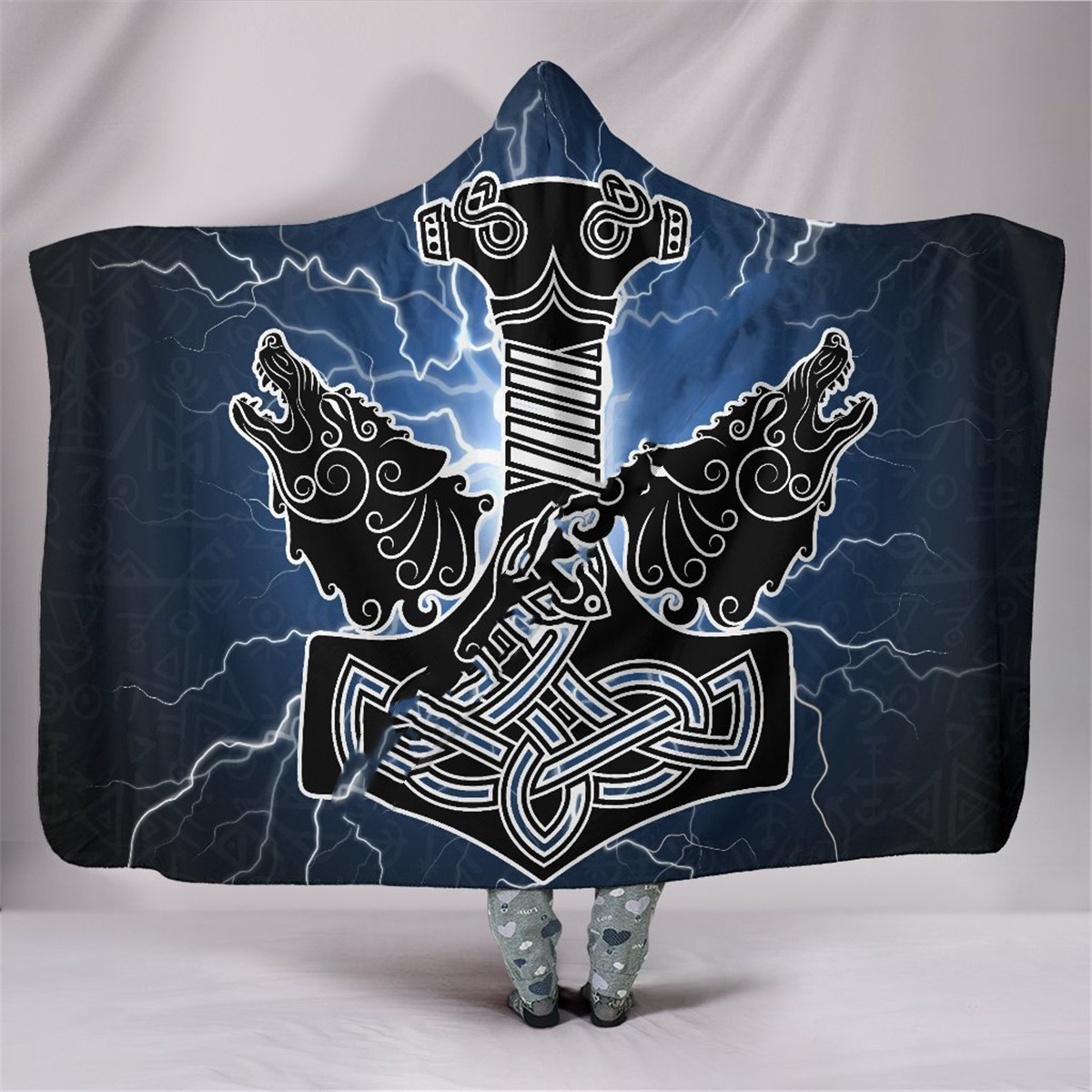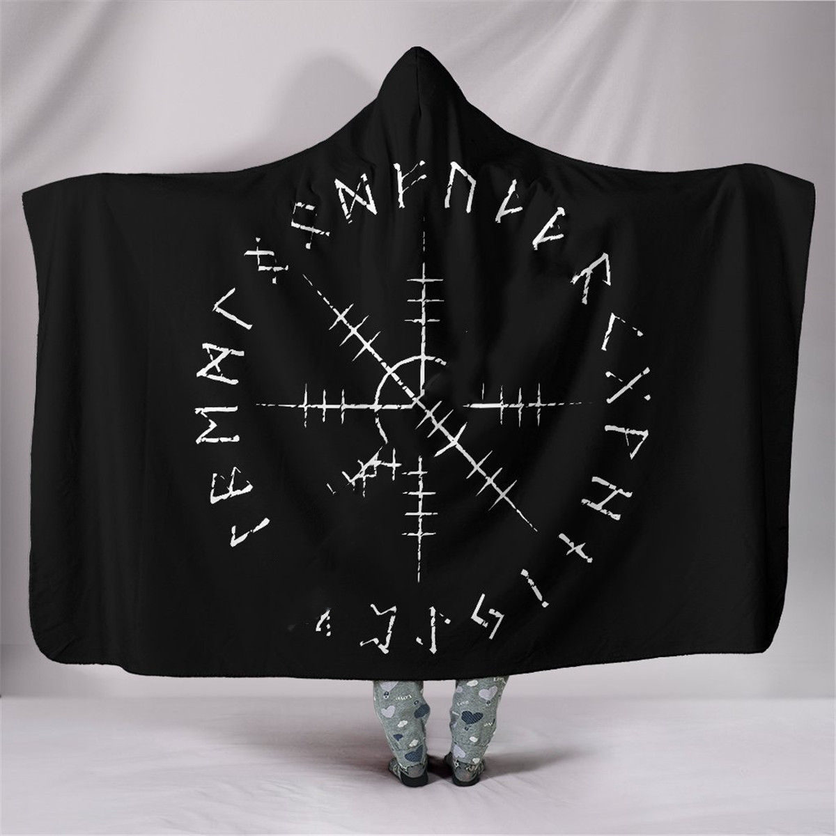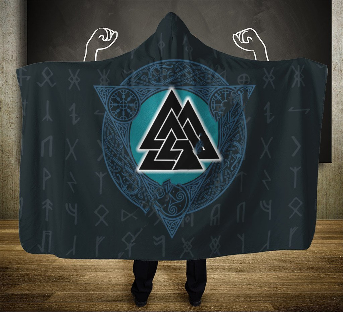 Viking Rune Series Yellow Fleece Hooded Blanket