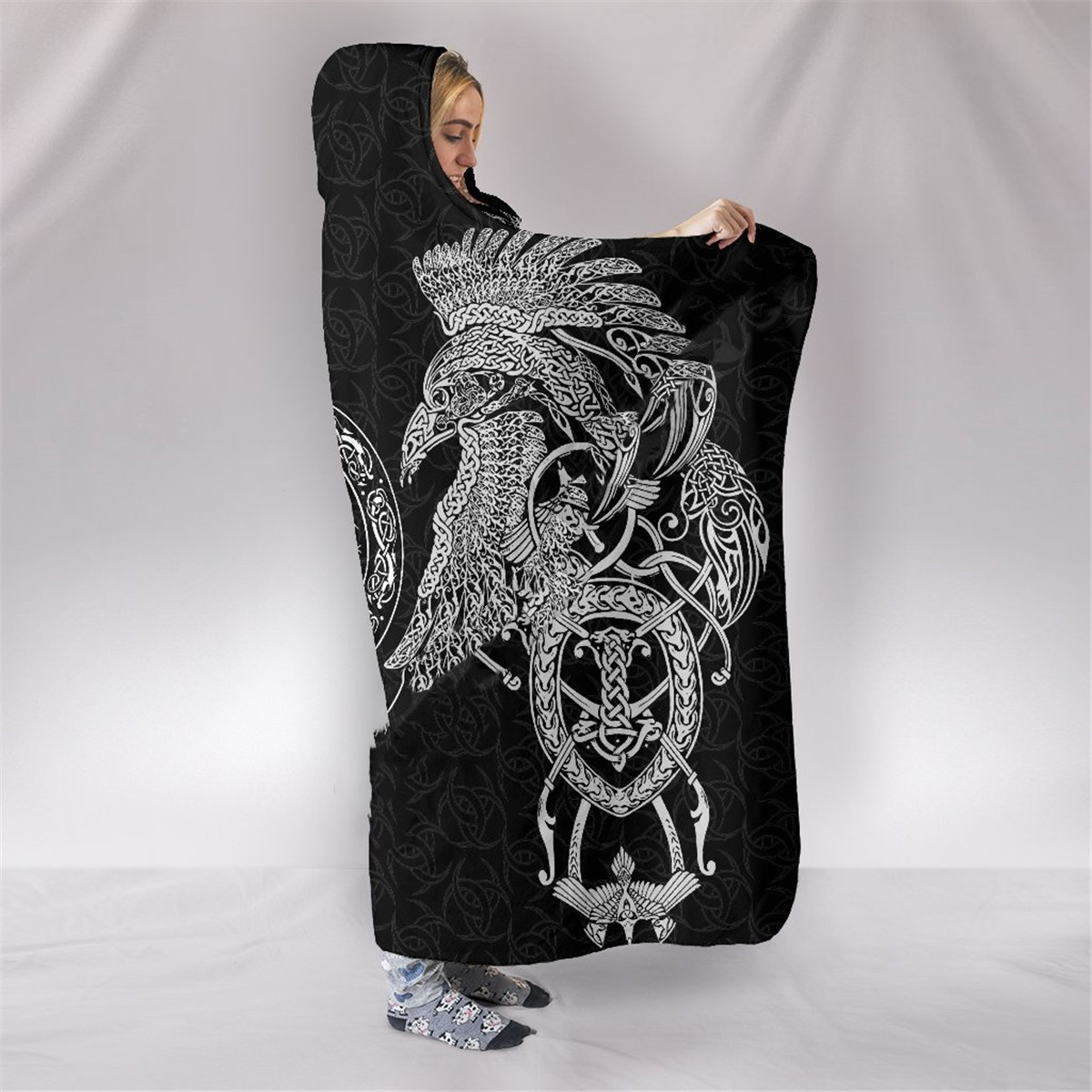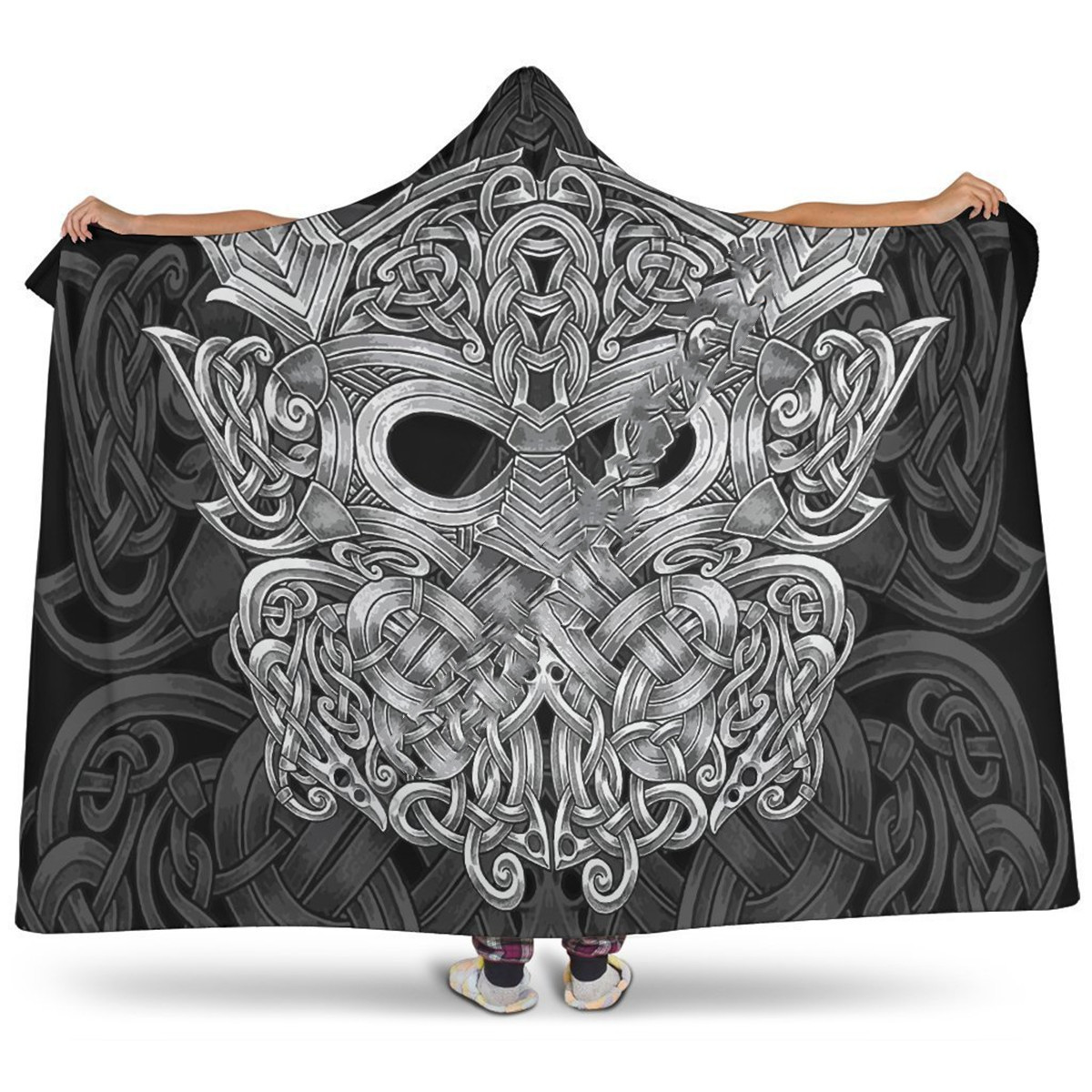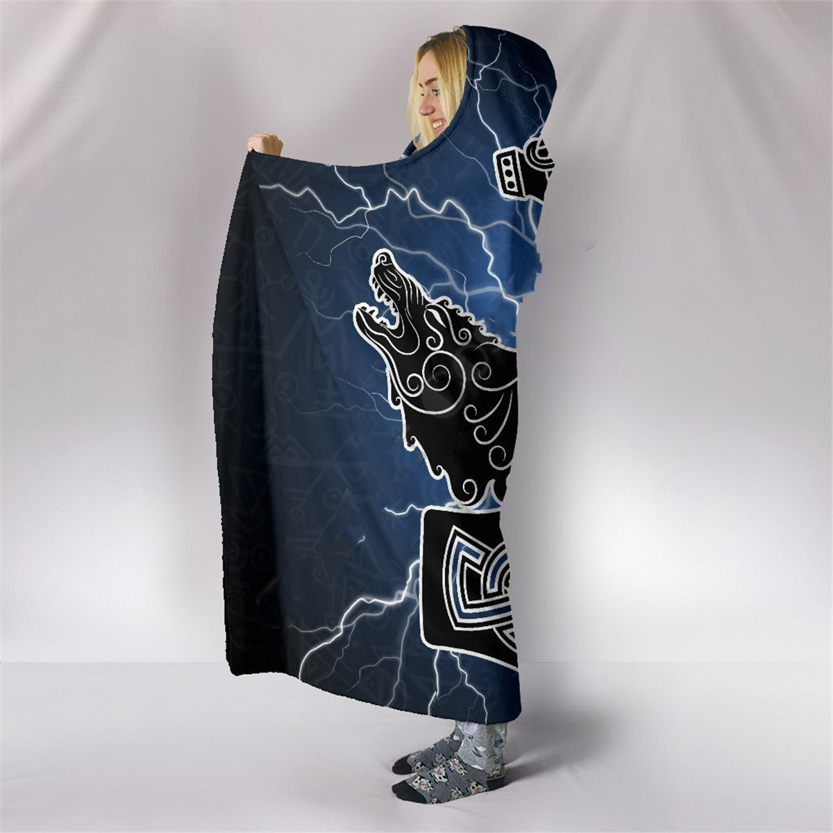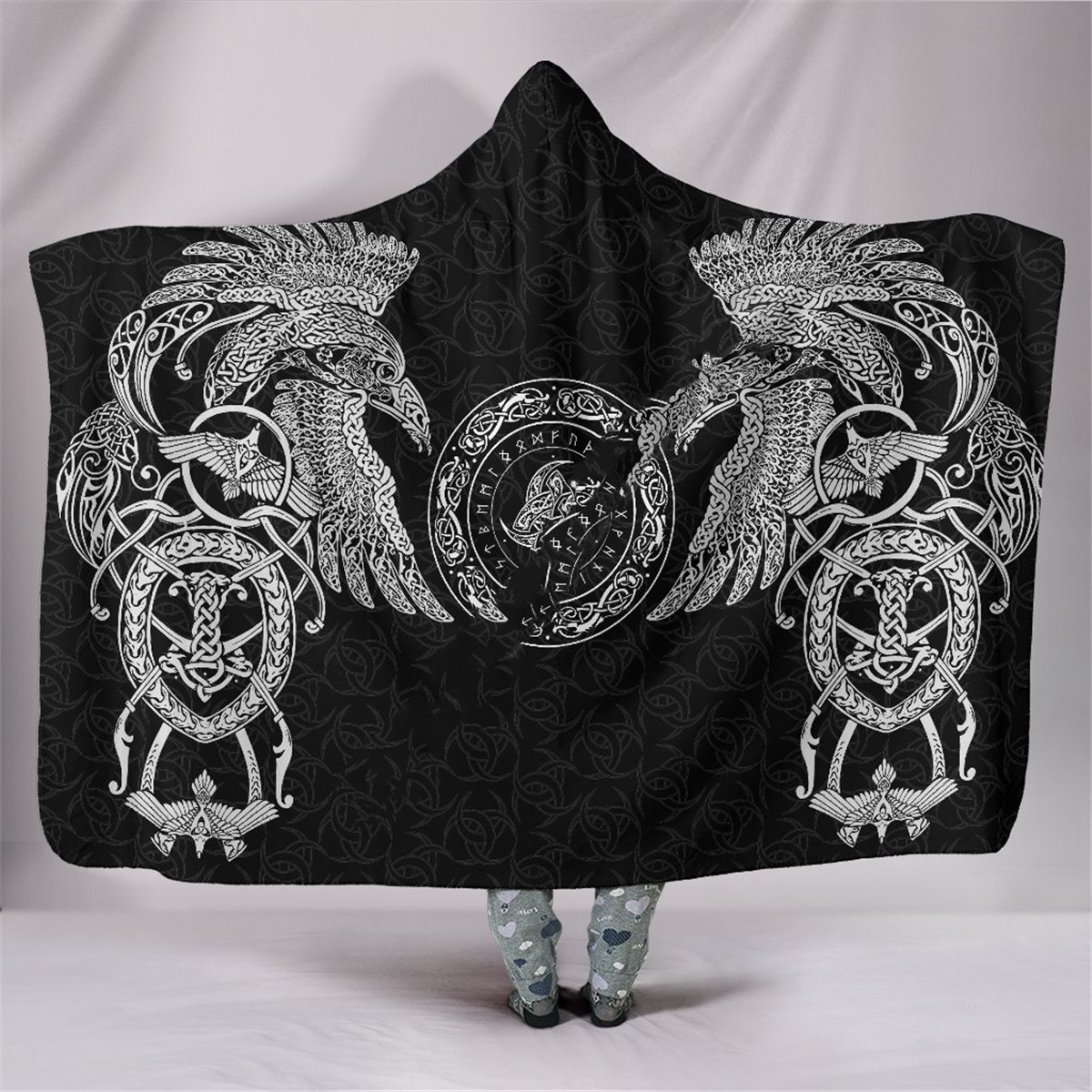 Viking Rune Series Yellow Fleece Hooded Blanket