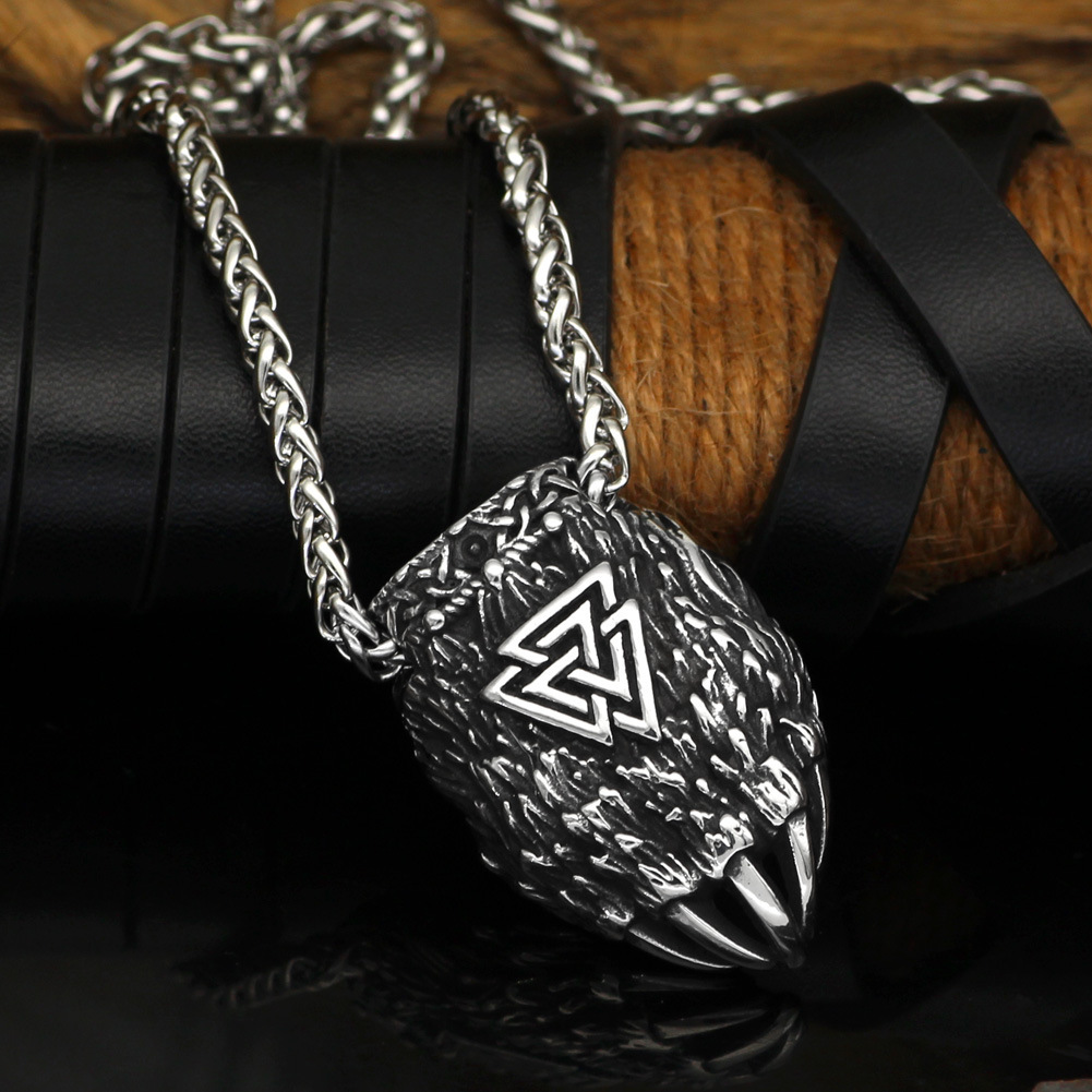 Viking Triangle Rune Hand-shaped Brush Stainless Steel Pendant