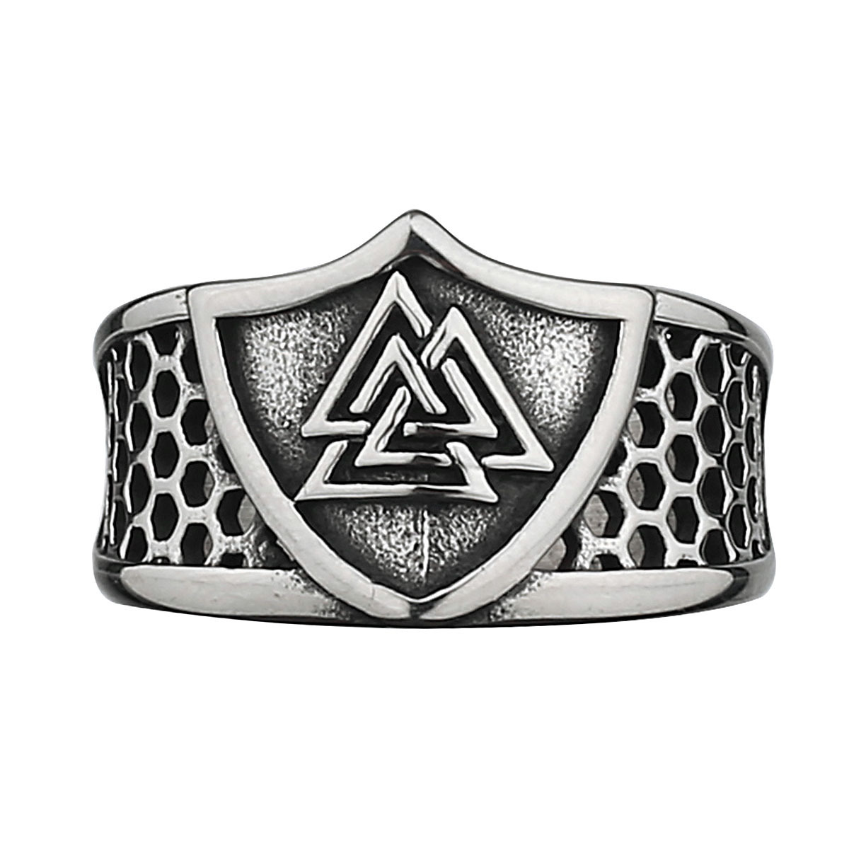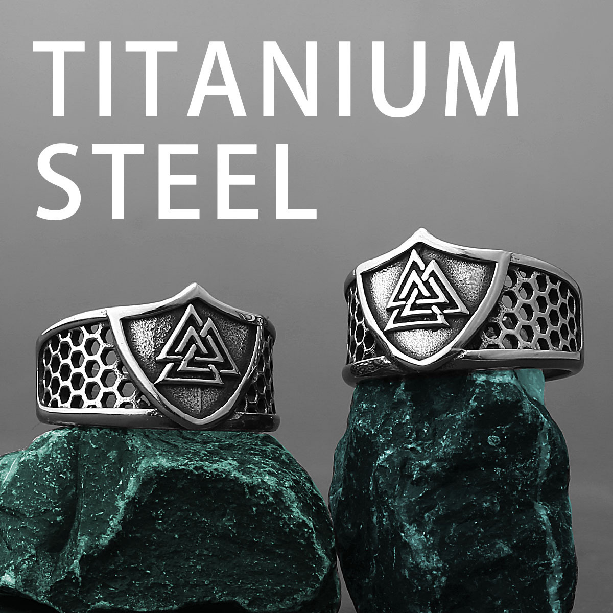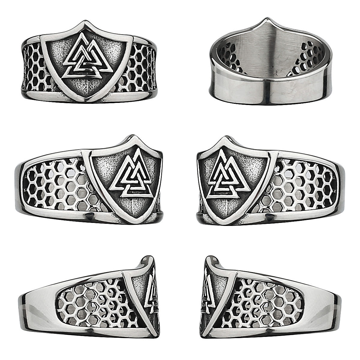 Viking Warrior Shield Rune Titanium Steel Hollow Ring