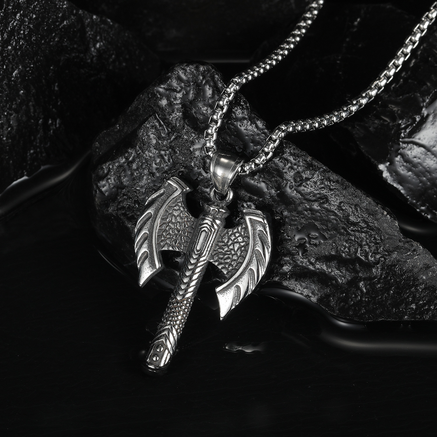 Vintage Battle Axe Pendant Men’s Titanium Steel Axe Necklace
